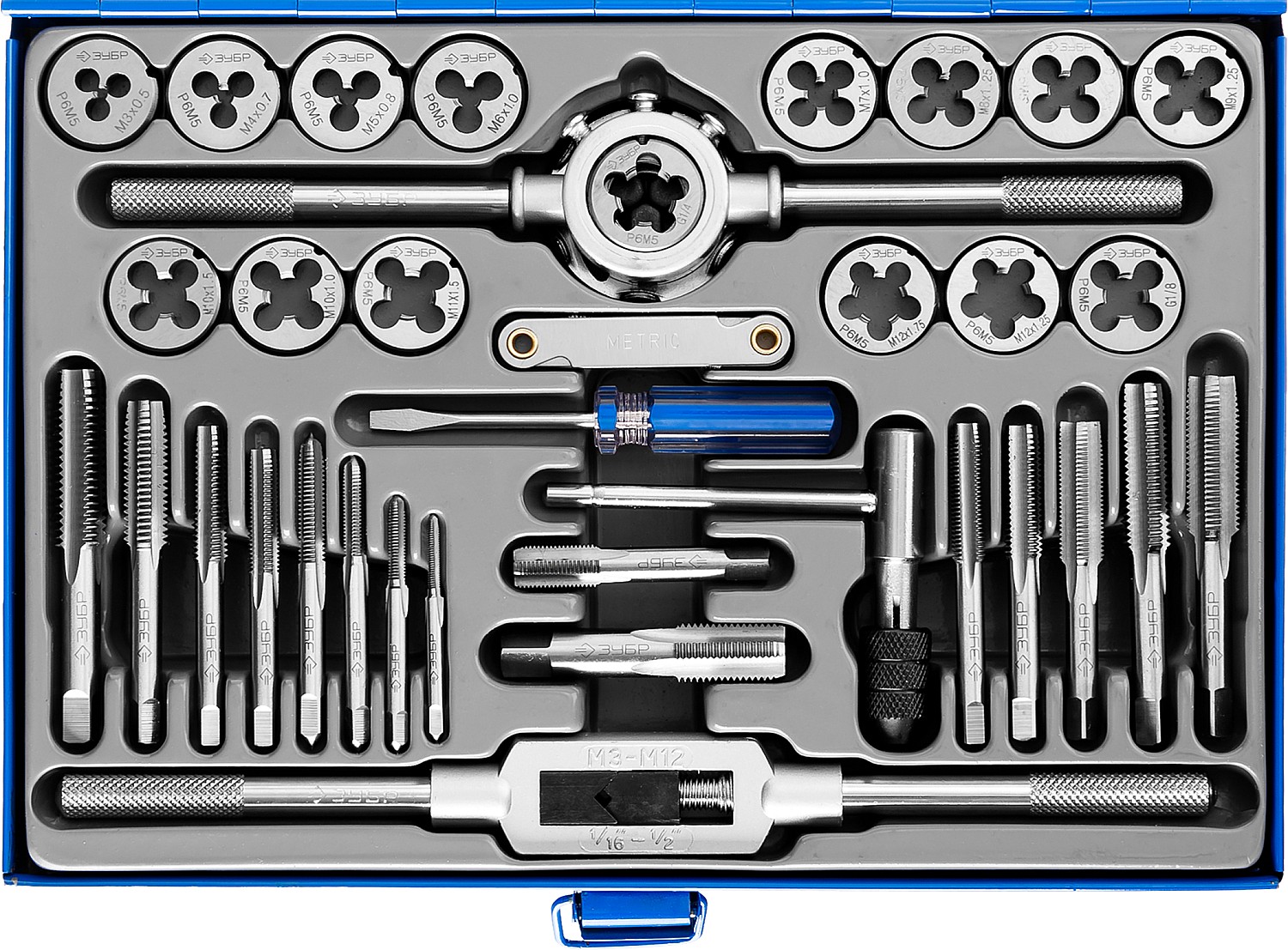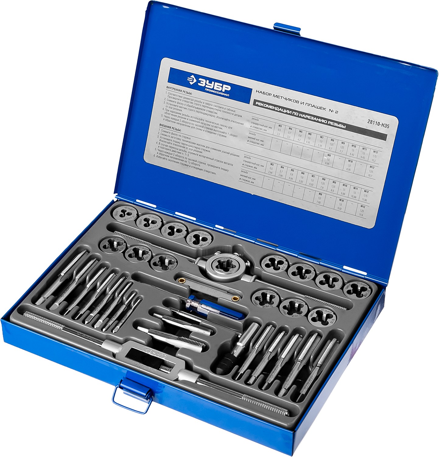 ЗУБР 35 предметов, сталь Р6М5, Набор метчиков и плашек, Профессионал (28110-H35)