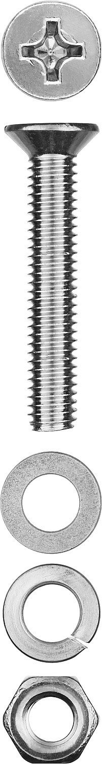 ЗУБР DIN 965 M4 x 40 мм, винт с гайкой и шайбами, 15 шт (303456-04-040)