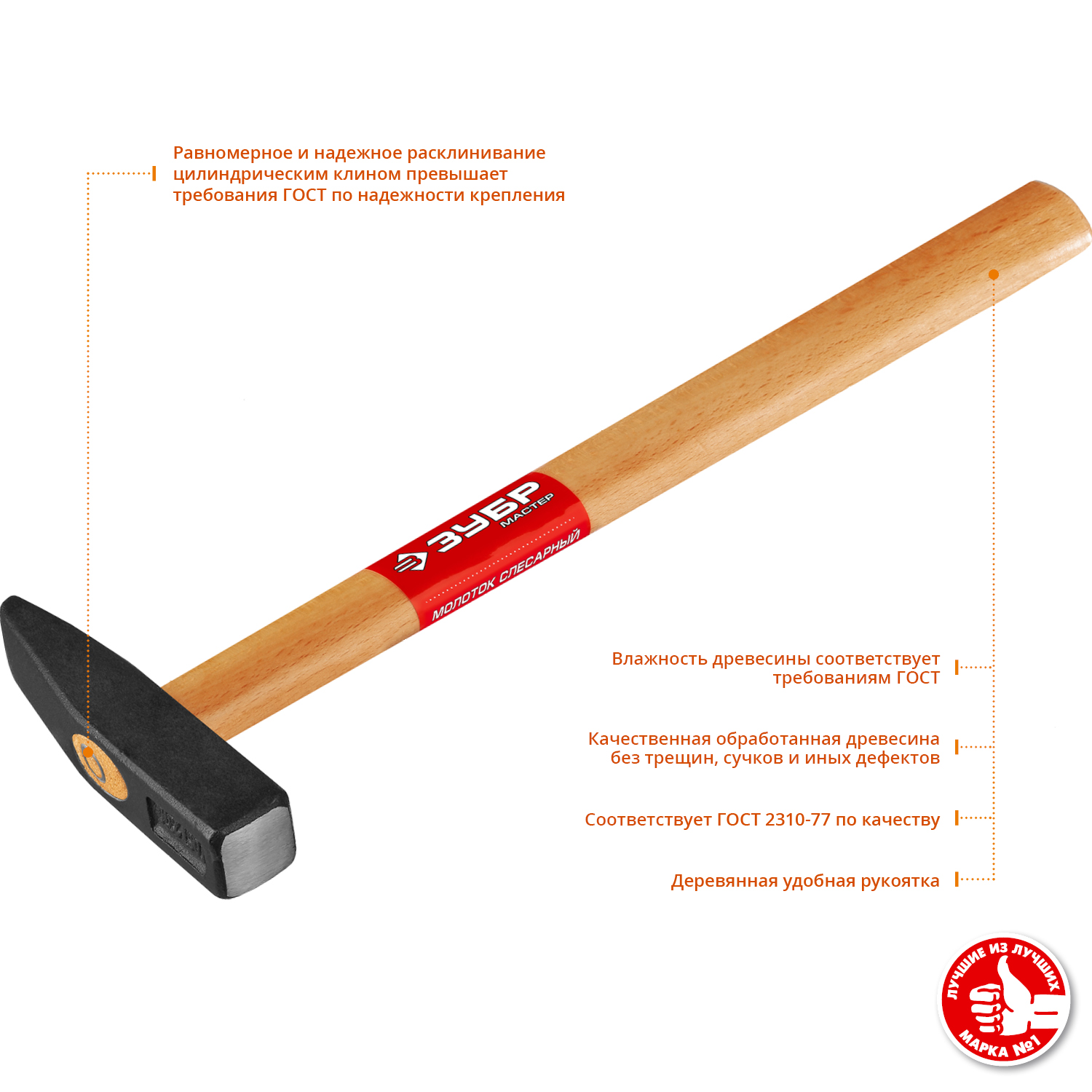 ЗУБР №2 для молотков 400 г 500 г, Деревянная рукоятка (20299-2)20299-2