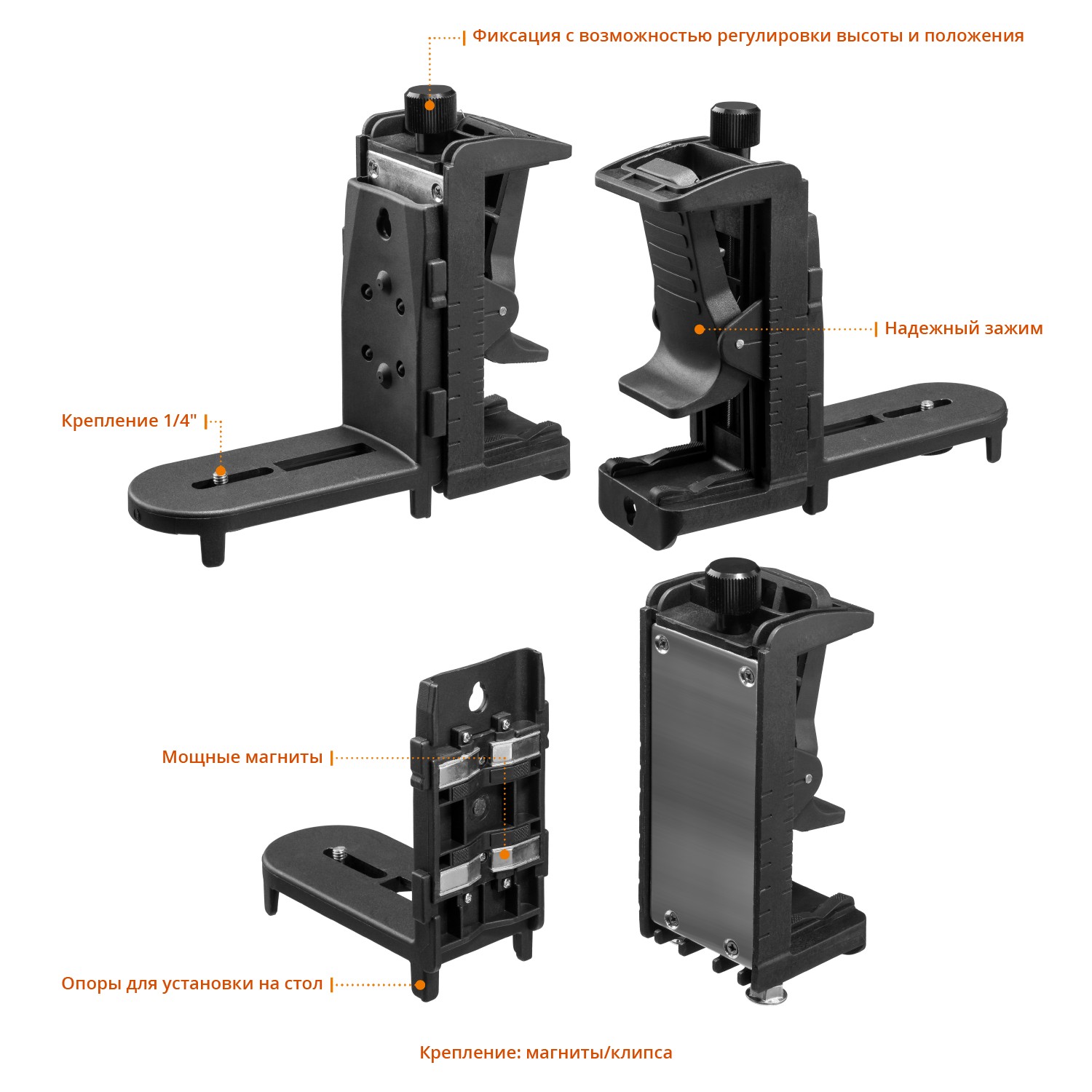 - 3 режима проецирования линий: горизонтальная и две вертикальные линии с развёрткой 360°, благодаря чему луч будет виден в любой точке.