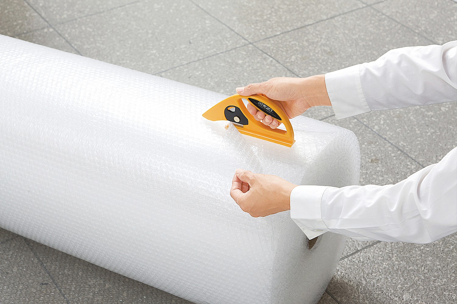 Если нужно разрезать рулонные материалы, такие как ковер, линолеум, ландшафтная ткань, бумага и т. д., то нож с круговым лезвием OLFA 45-C — это то, что Вам нужно.