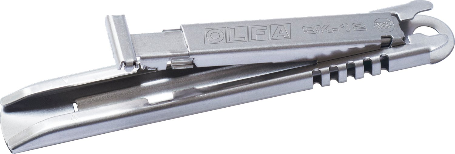 Нож OLFA SK-12 специально разработан для применения в пищевой промышленности и ресторанном бизнесе. Сертифицирован NSF благодаря возможности легко поддерживать его в чистоте любыми методами и составами, в том числе дезинфекция гипохлоритом натрия, за счет конструкции и лезвию SKB-2S из нержавеющей стали. Также, нержавеющая сталь обладает высоким коэффициентом намагничивания, что обеспечивает ножу более высокую точность нахождения металлодетекторами, чем у обычных ножей с пластиковыми рукоятками.