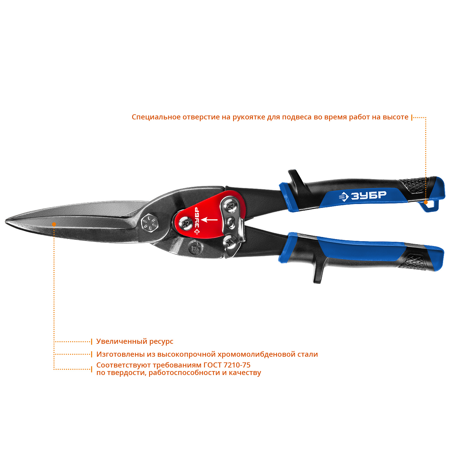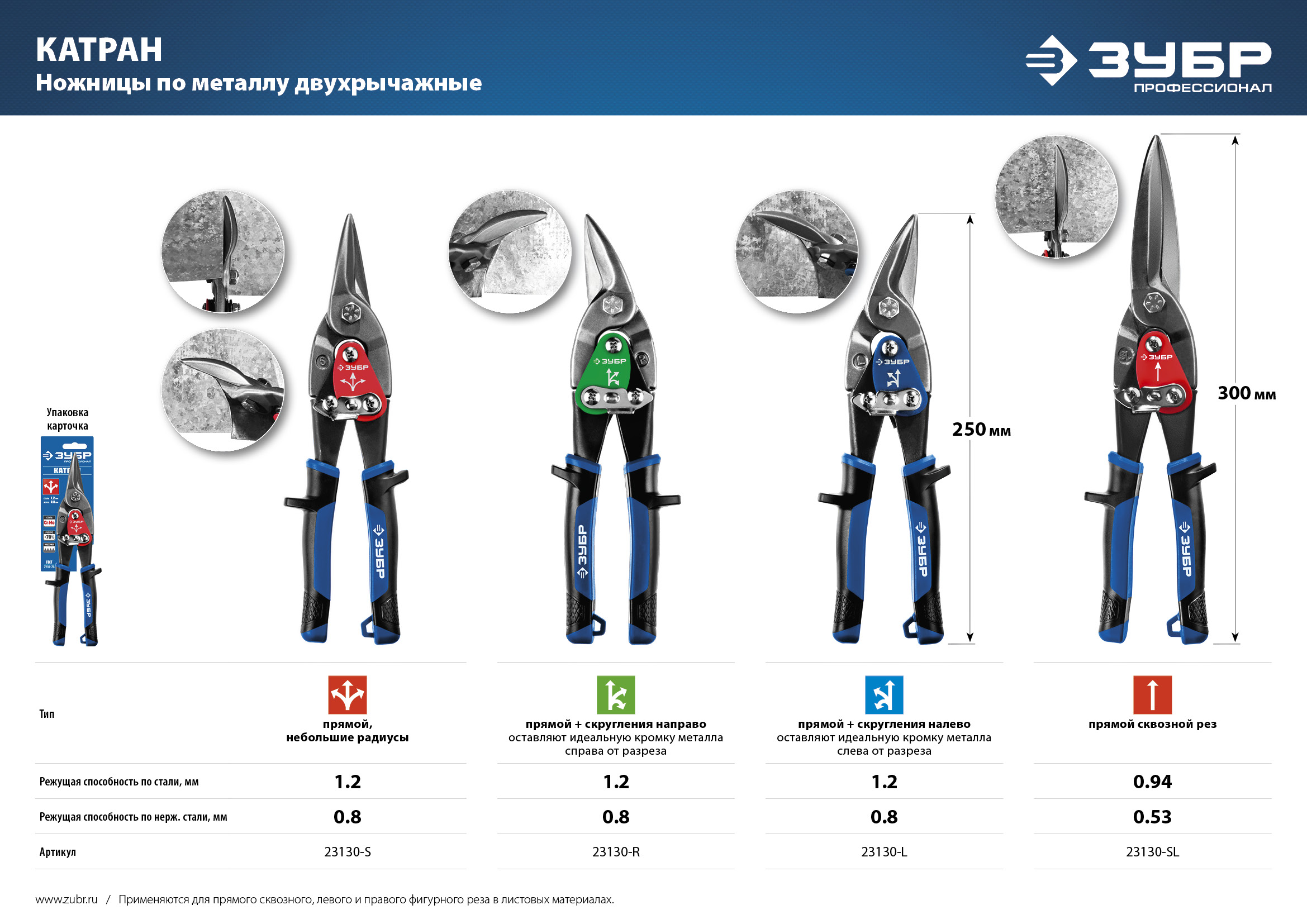 Профессиональный инструмент для реза листового металла, режущая способность: сталь - 0.94 мм, нерж. - 0.53 мм