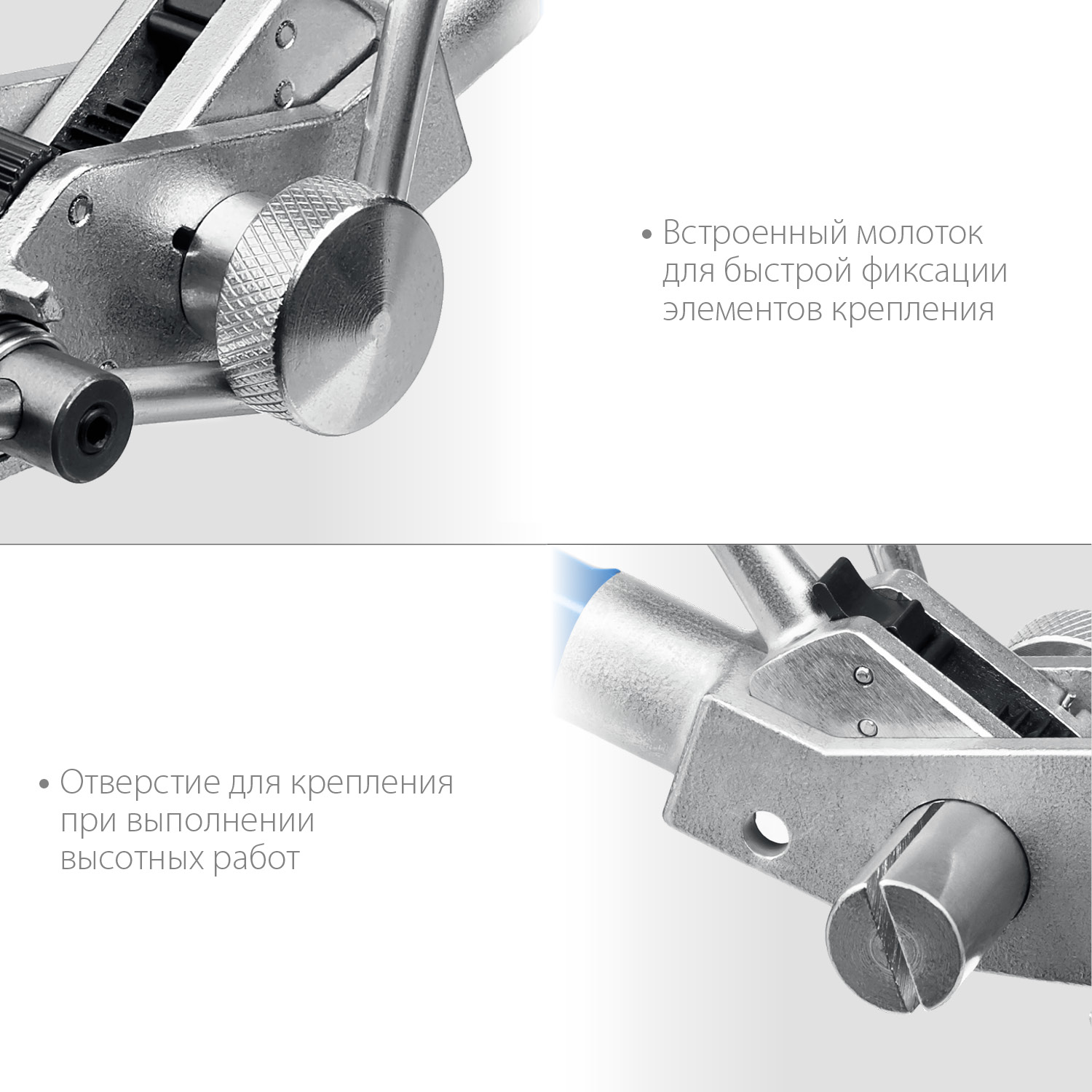 Инструмент 2в1 для затяжки стальных лент предназначен для быстрой и надёжной стяжки и обрезки. Ширина затягиваемых металлических лент до 20 мм. Цельнометаллический корпус с защитным покрытием. Усиленный нож для обрезки ленты.