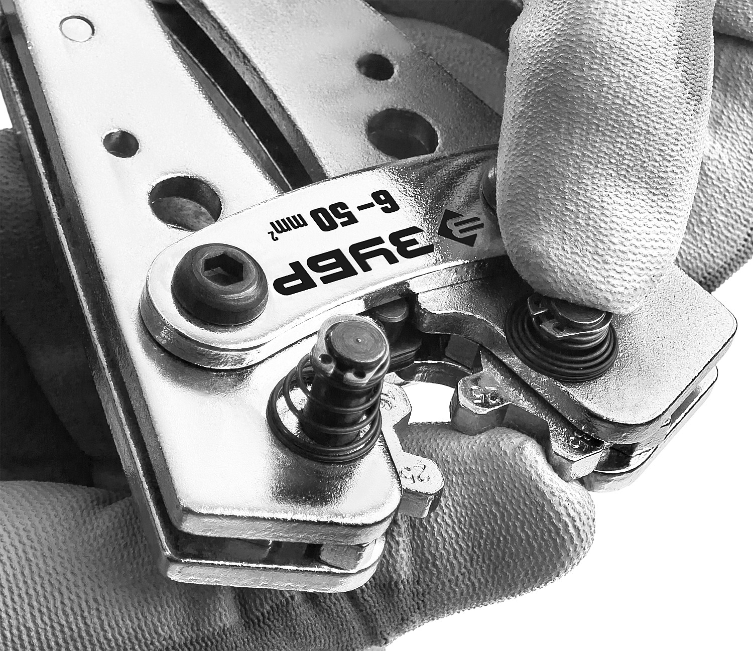 • Рычажная конструкция обеспечивает удобство в процессе обжима наконечников.