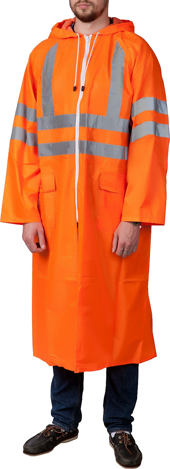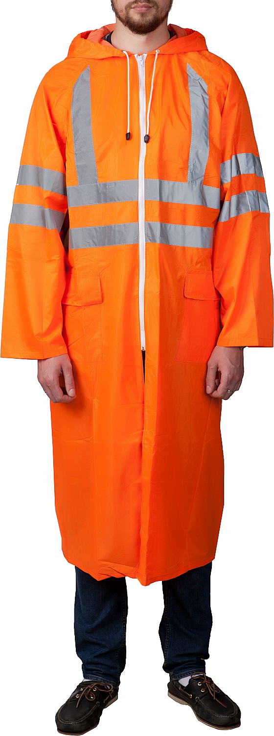 - Рукава с втачными манжетами и объемный капюшон на кулисе, делают ношение дождевика очень комфортным
