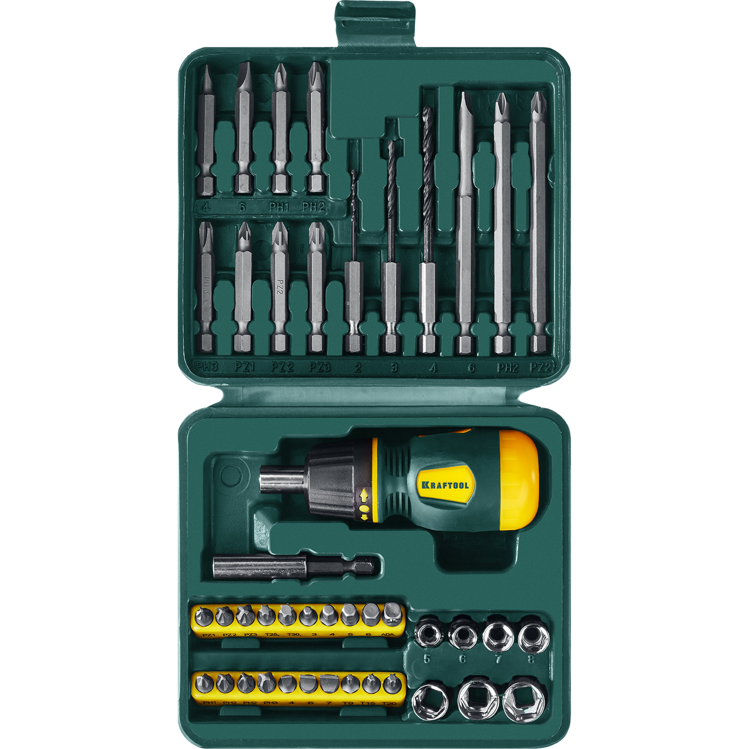 Профессиональный компактный набор KRAFTOOL предназначен для применения в комплекте с ручным и электроинструментом