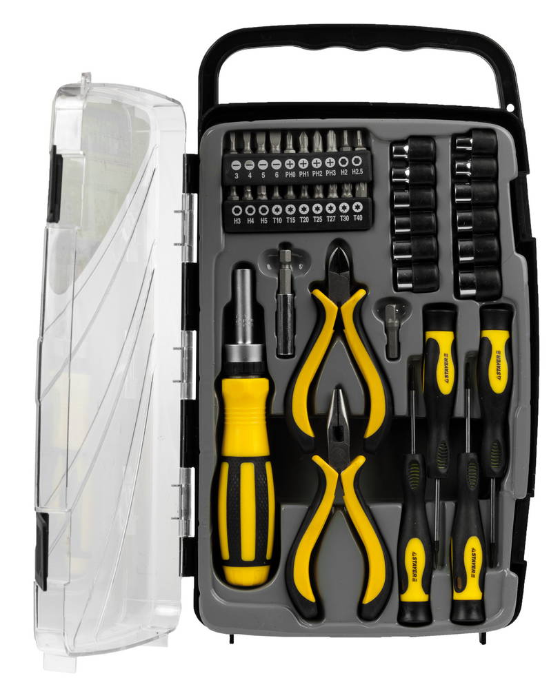 Универсальный набор инструментов для всех видов работ. Набор укомплектован реверсивной отверткой с насадками, отвертками для точных работ и мини-губцевыми инструментами. Набор разработан в соответствии с высочайшими требованиями профессионалов