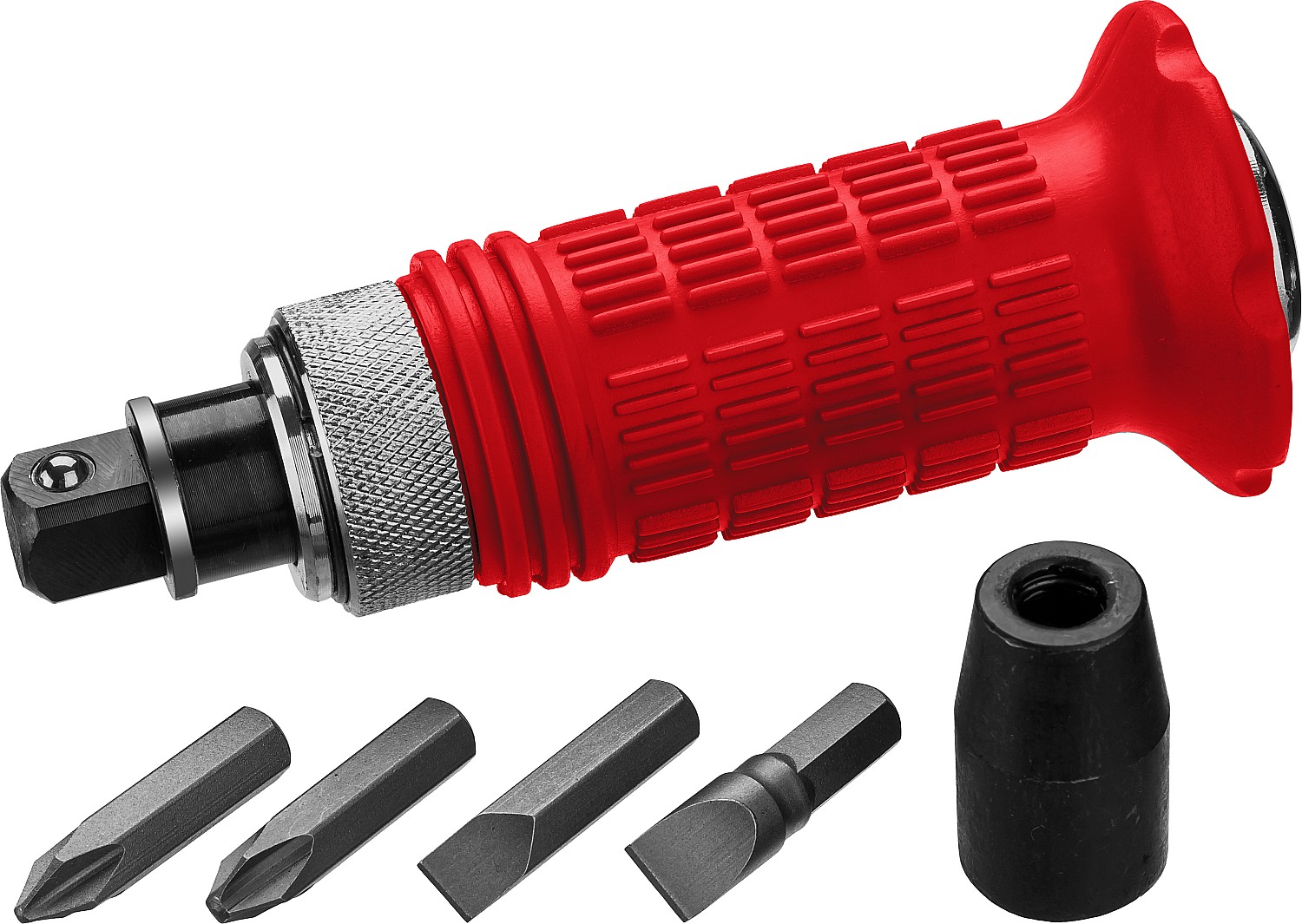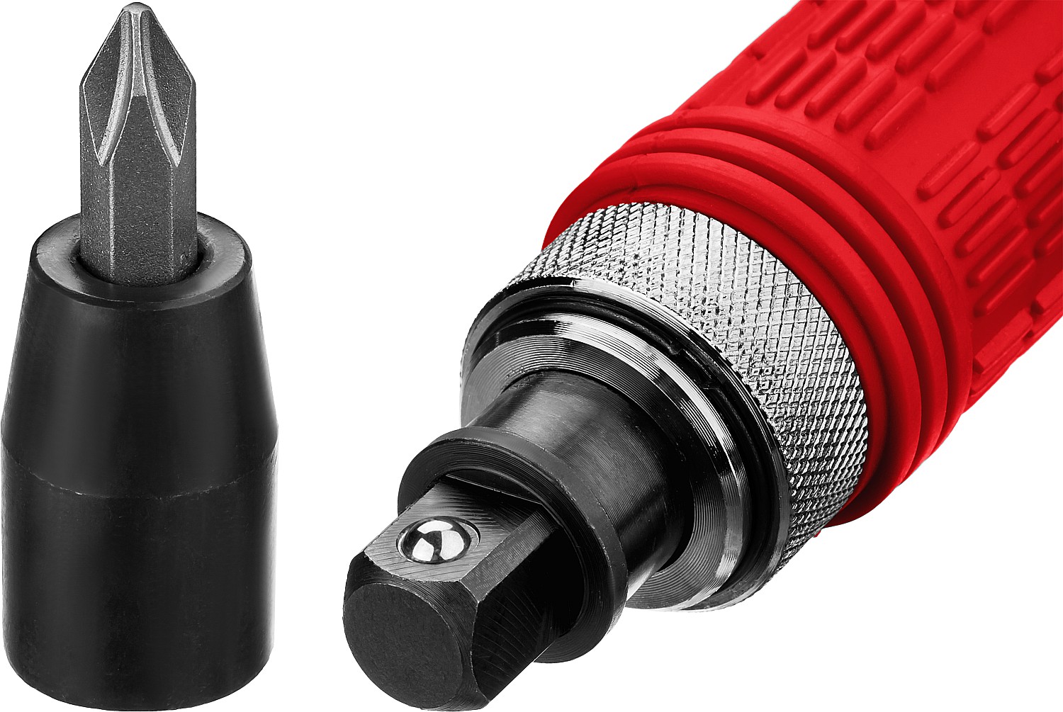 - Возможна работа как с битами с хвостовиком 5/16”, так и с ударными головками с присоединительным квадратом ½”