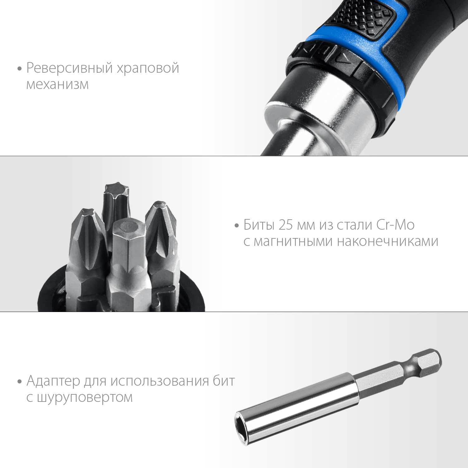 Профессиональный компактный набор с реверсивной отверткой для работы как с ручным так и с электроинструментом