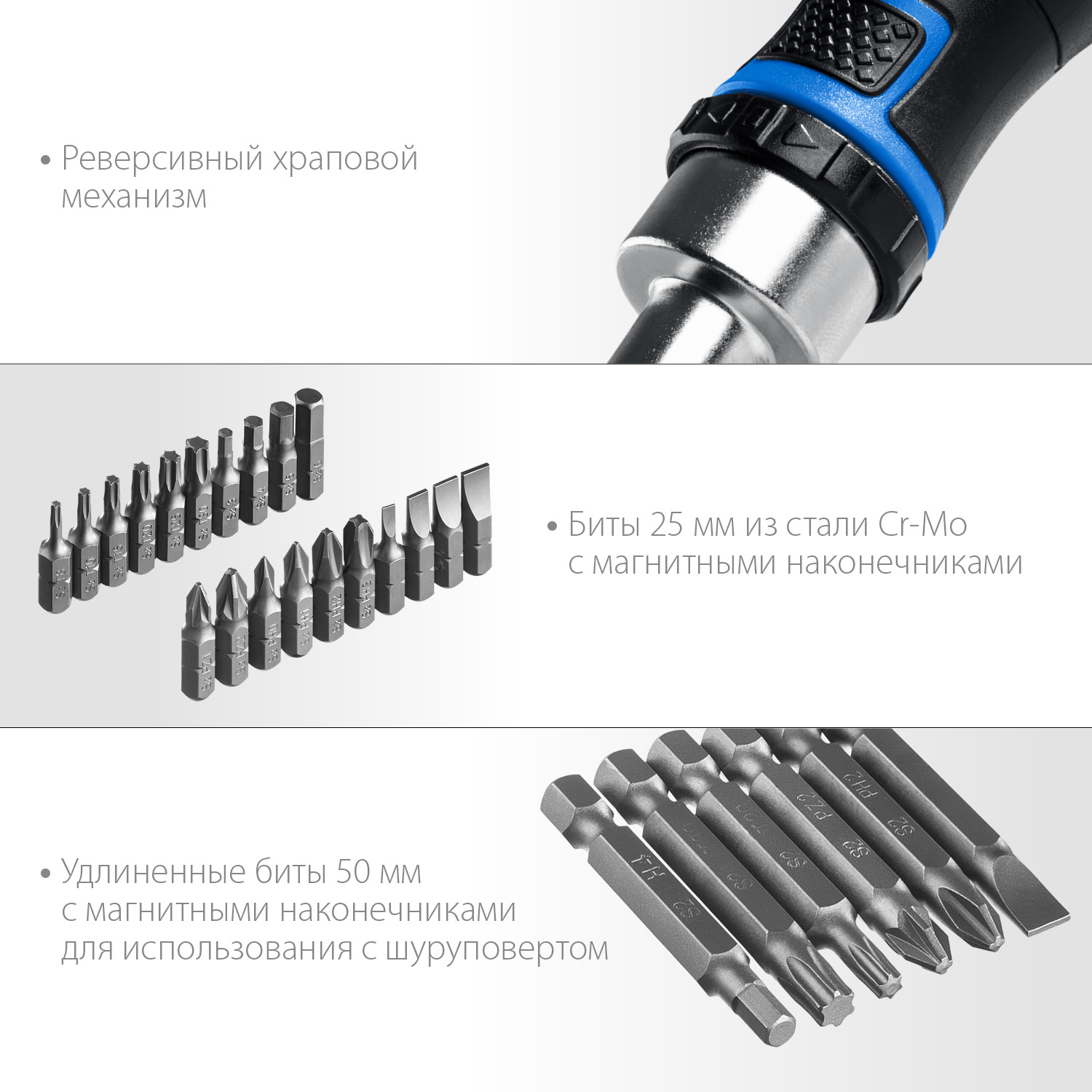Профессиональный компактный набор с реверсивной отверткой для работы как с ручным так и с электроинструментом