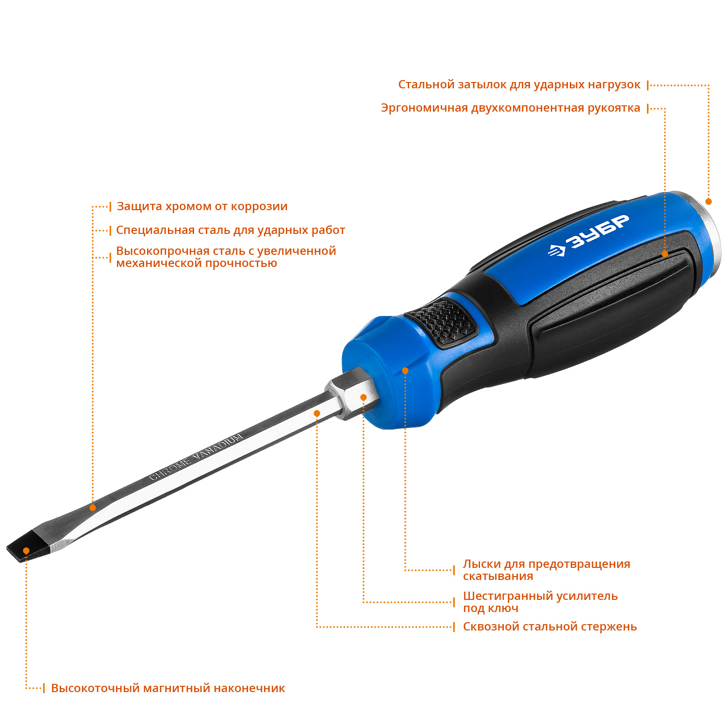 • Высокопрочная Cr-V сталь с увеличенной механической прочностью