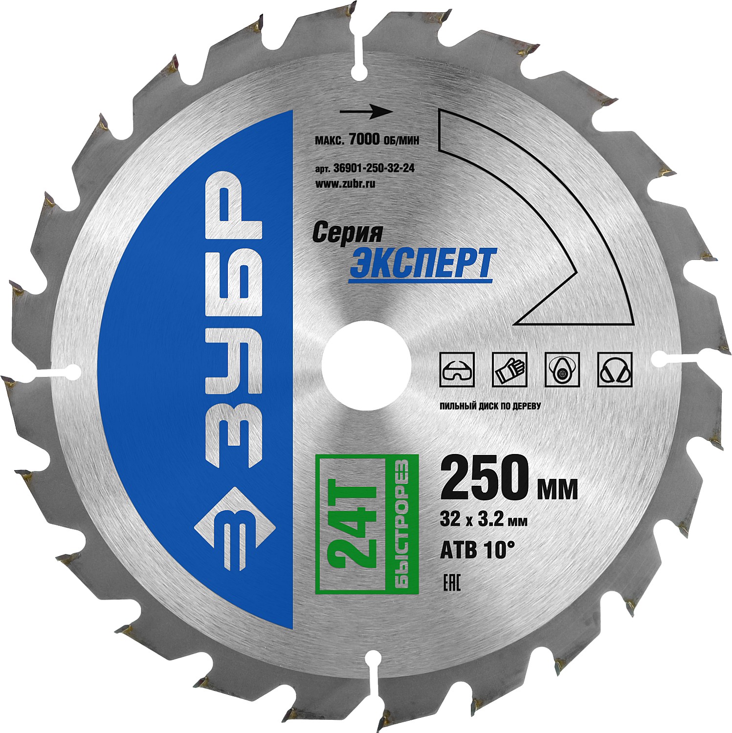 ЗУБР Быстрорез 250 x 32мм 24Т, диск пильный по дереву