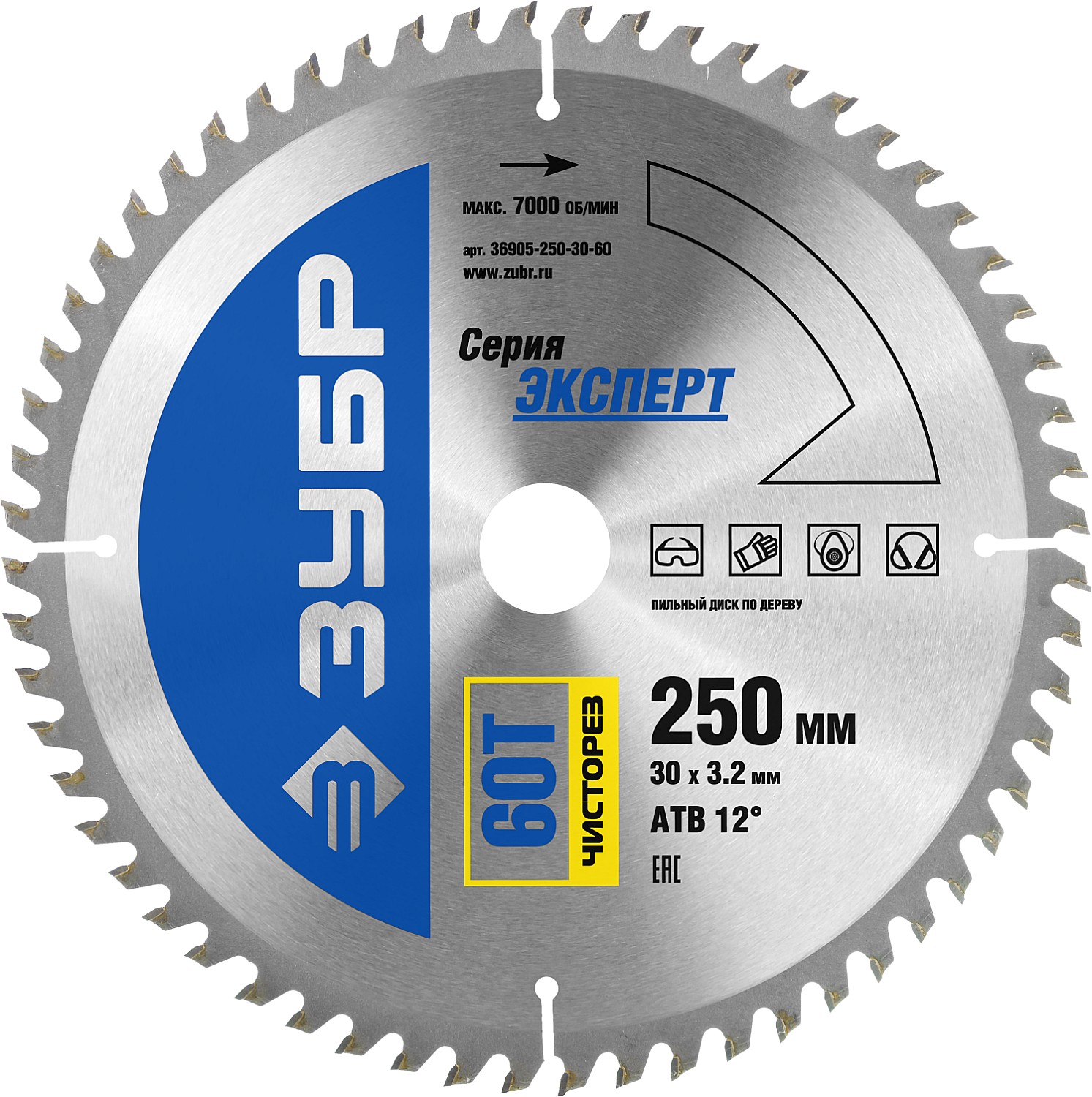 ЗУБР Чисторез 250 x 30мм 60Т, диск пильный по дереву