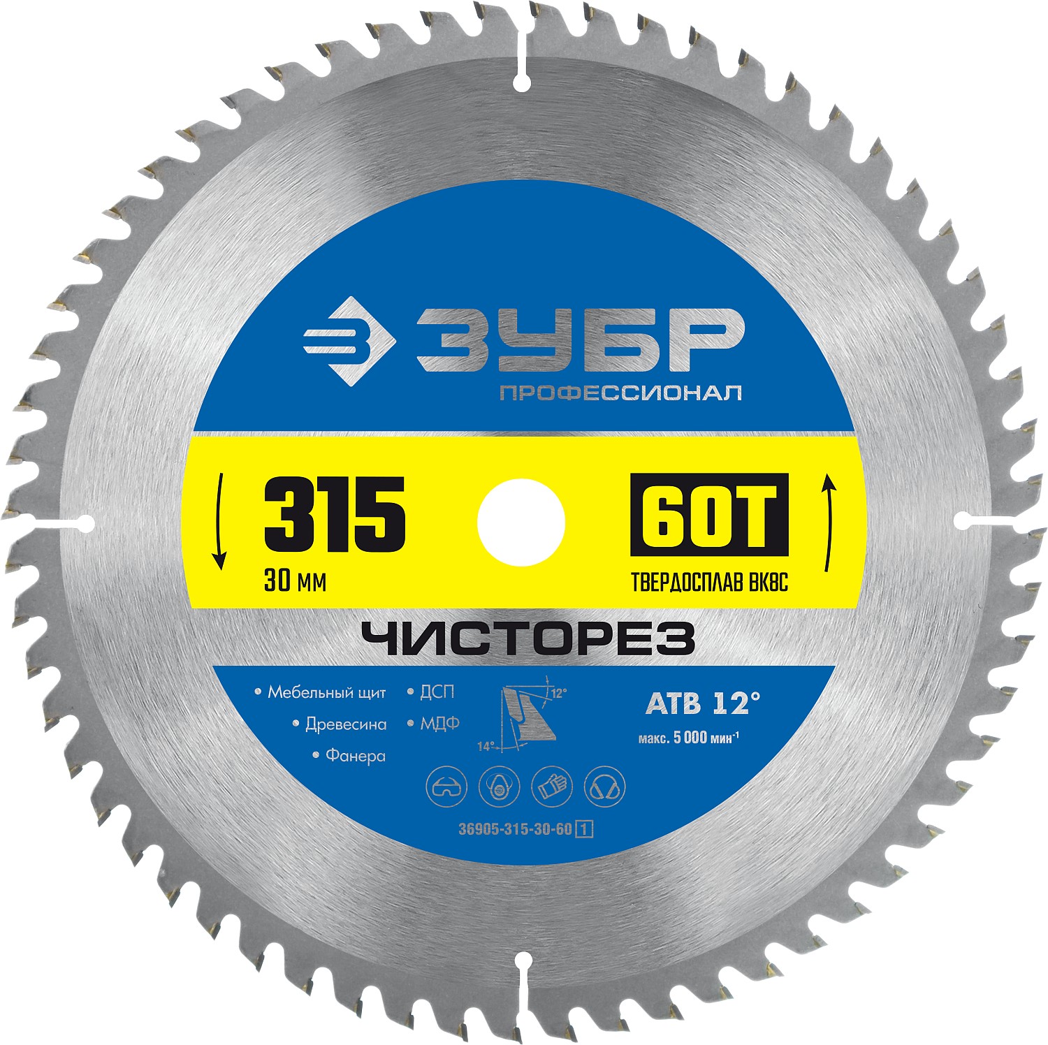 ЗУБР Чисторез 315 x 30мм 60Т, диск пильный по дереву