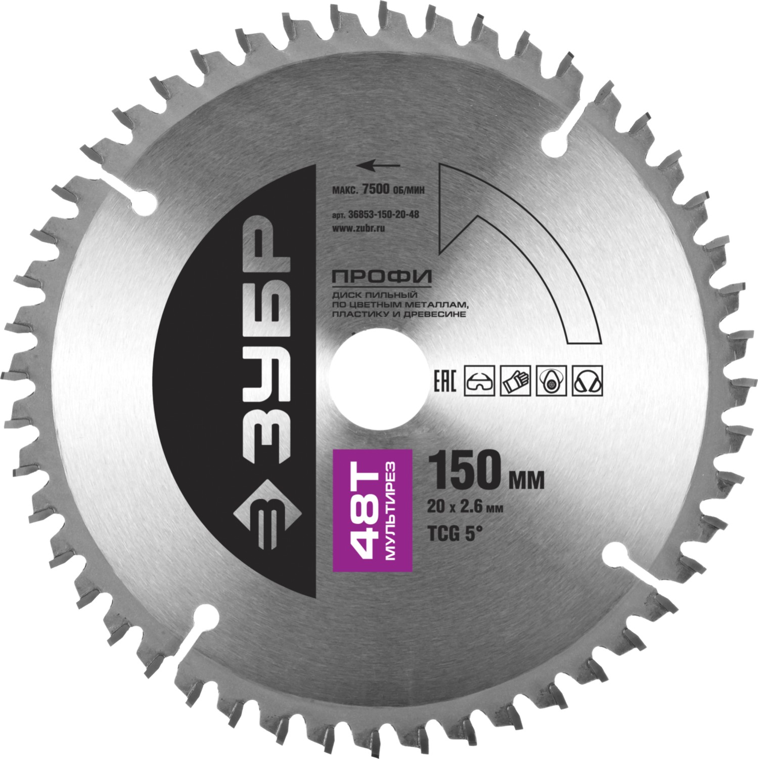 ЗУБР Мультирез 150х20мм 48Т, диск пильный по алюминию