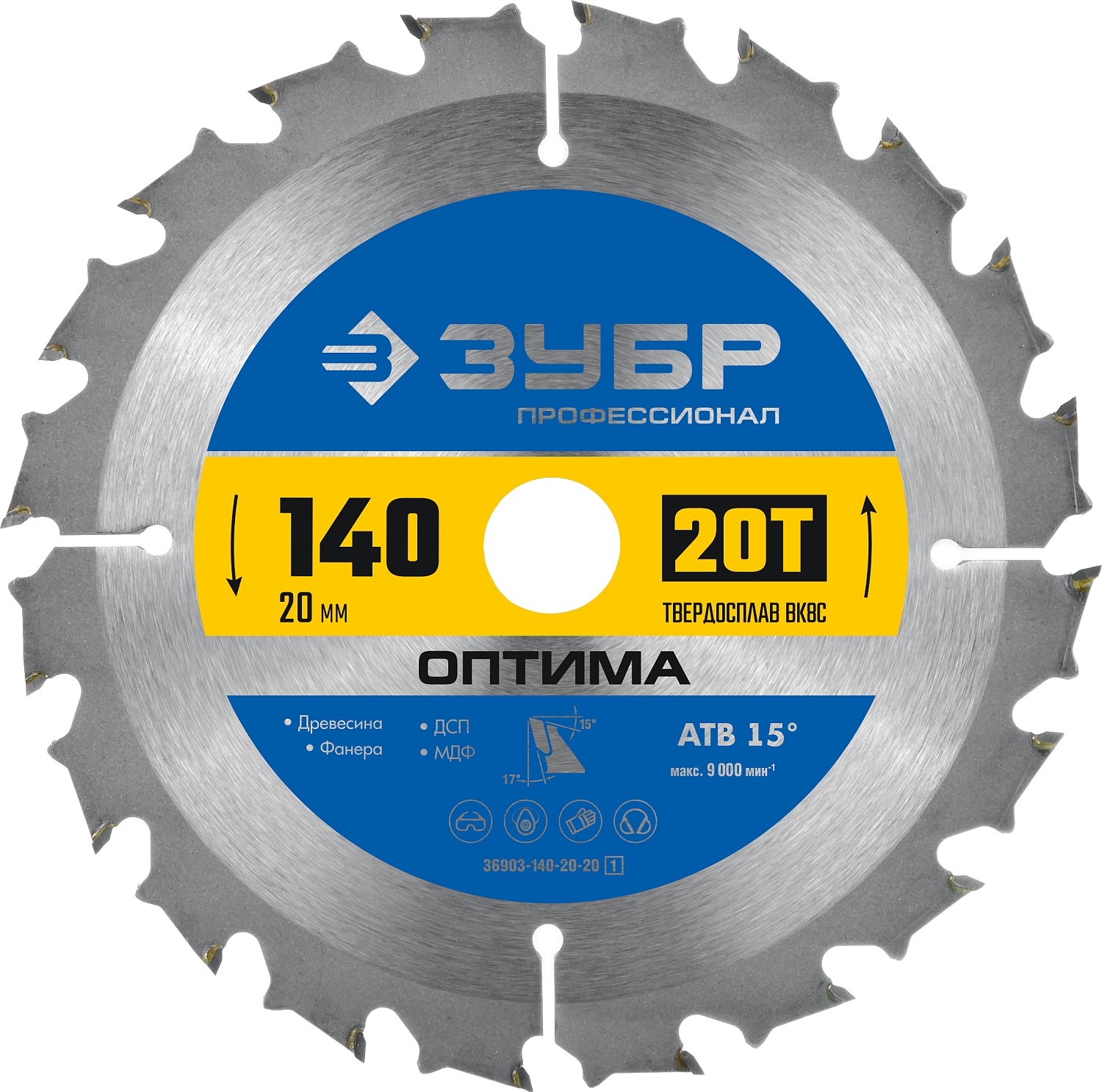 ЗУБР Оптима 140 x 20мм 20T, диск пильный по дереву