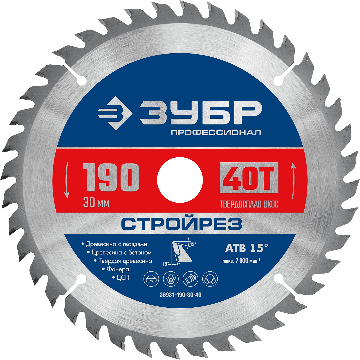 ЗУБР Стройрез 190х30мм 40Т, диск пильный по строительной древесине