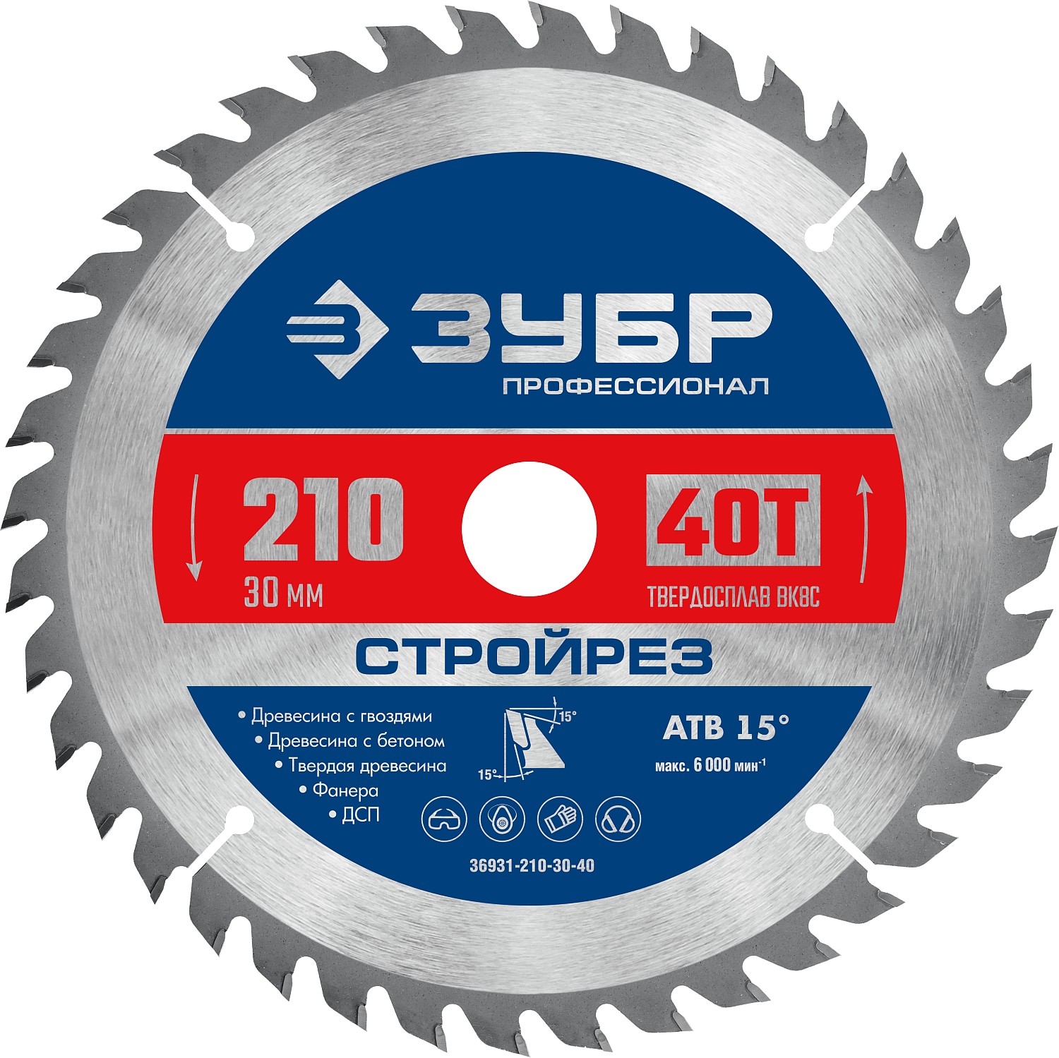 ЗУБР Стройрез 210х30мм 40Т, диск пильный по строительной древесине