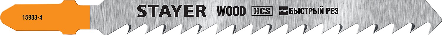 STAYER T144DP, T-хвост., HCS сталь, по дереву, прямой рез, шаг зуба 4мм, раб. длина 75мм, 2шт, Полотна для лобзика, Professional (15983-4)