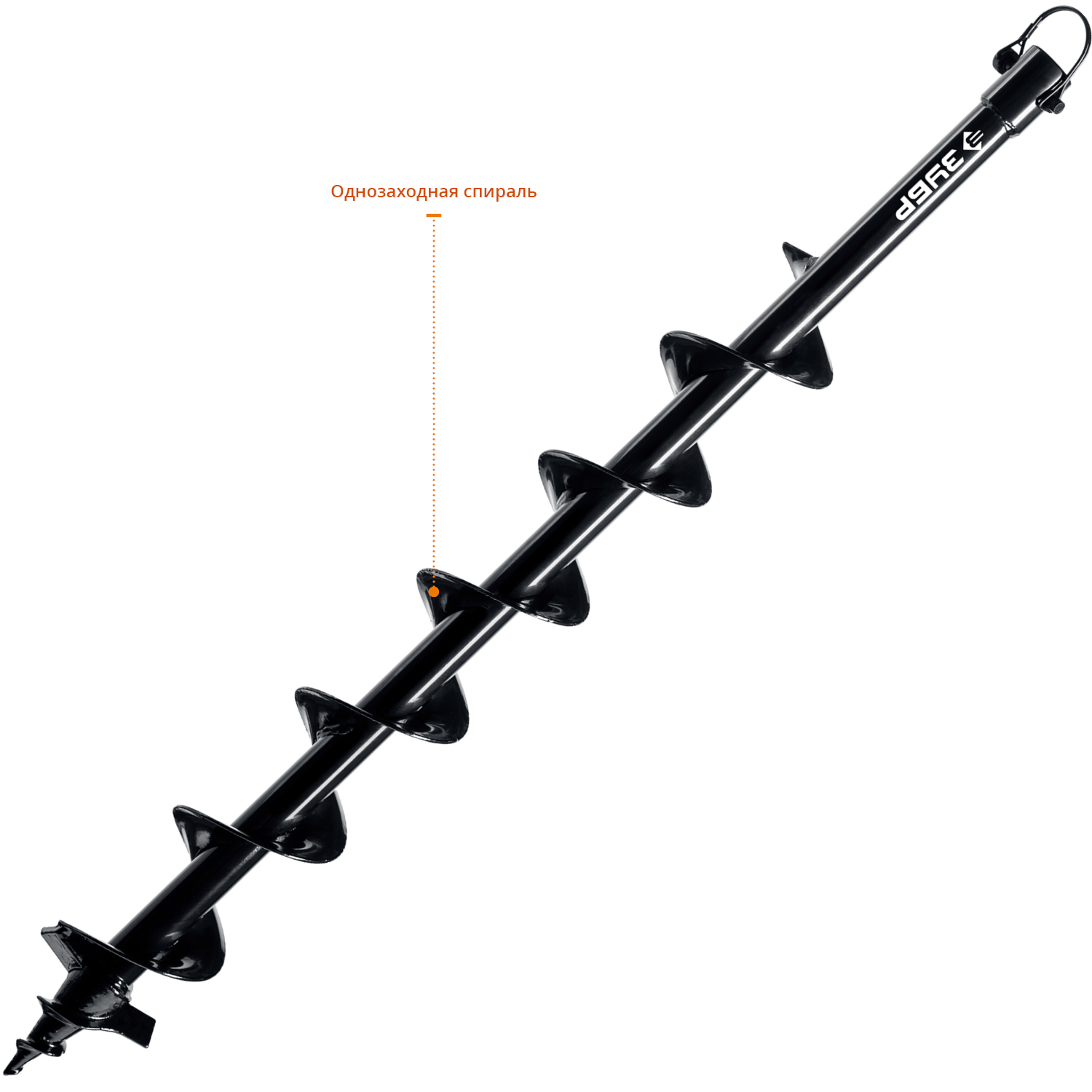 Шнек является сменным элементом для мотобуров ЗУБР. Он представляет собой винтообразный бур, который широко применяют для бурения скважин бытового назначения. Например, с его помощью можно бурить скважины для установки столбов. Благодаря винтовой форме шнек быстро проникает сквозь грунт и выбрасывает его наверх.