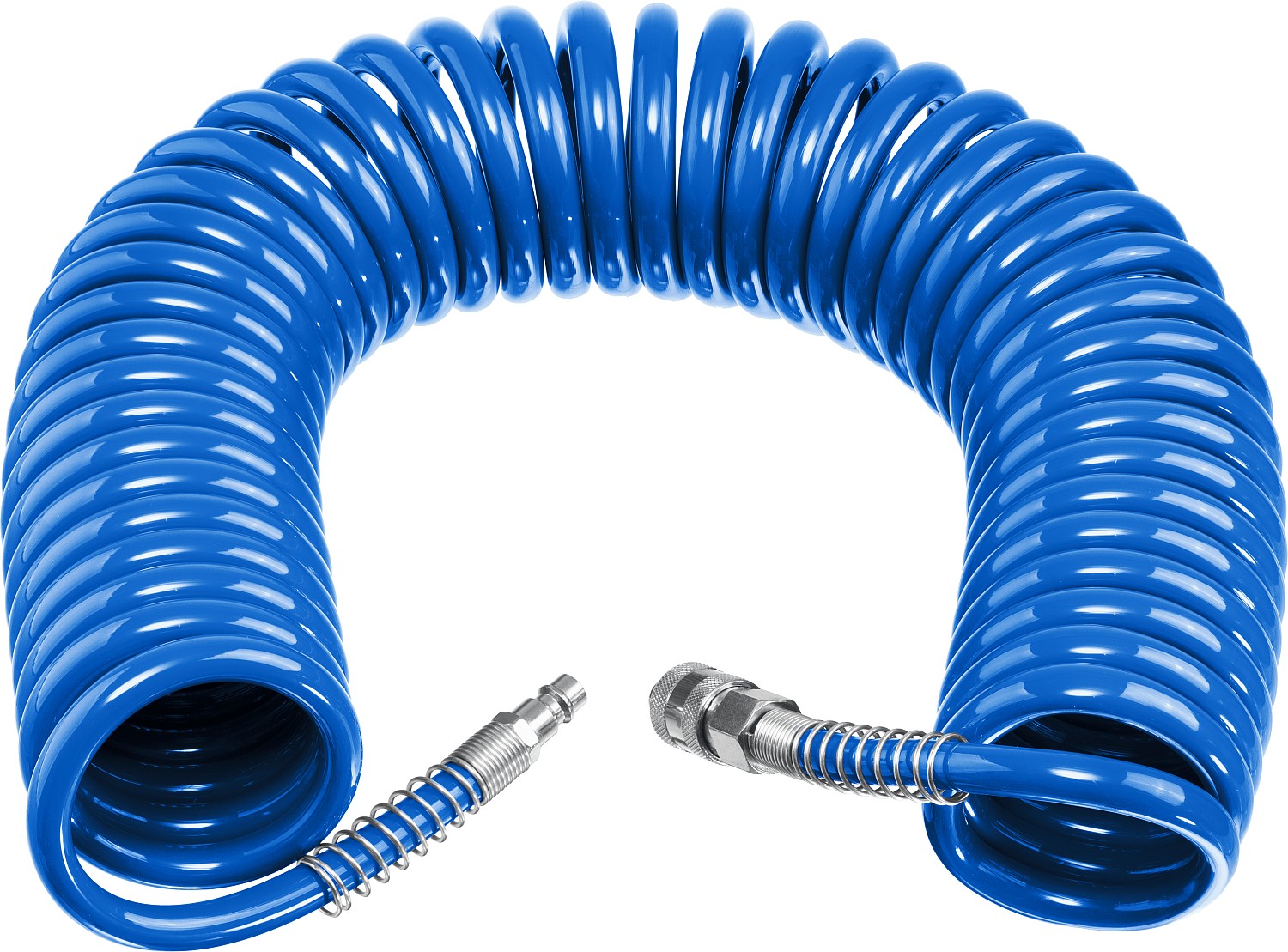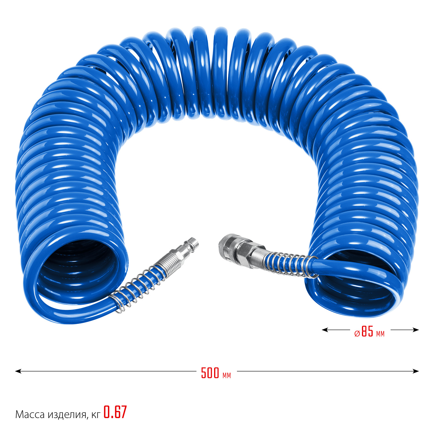 ЗУБР 15 м, 6х8 мм, 15 бар, Воздушный спиральный шланг с фитингами рапид, Профессионал (6473-15)