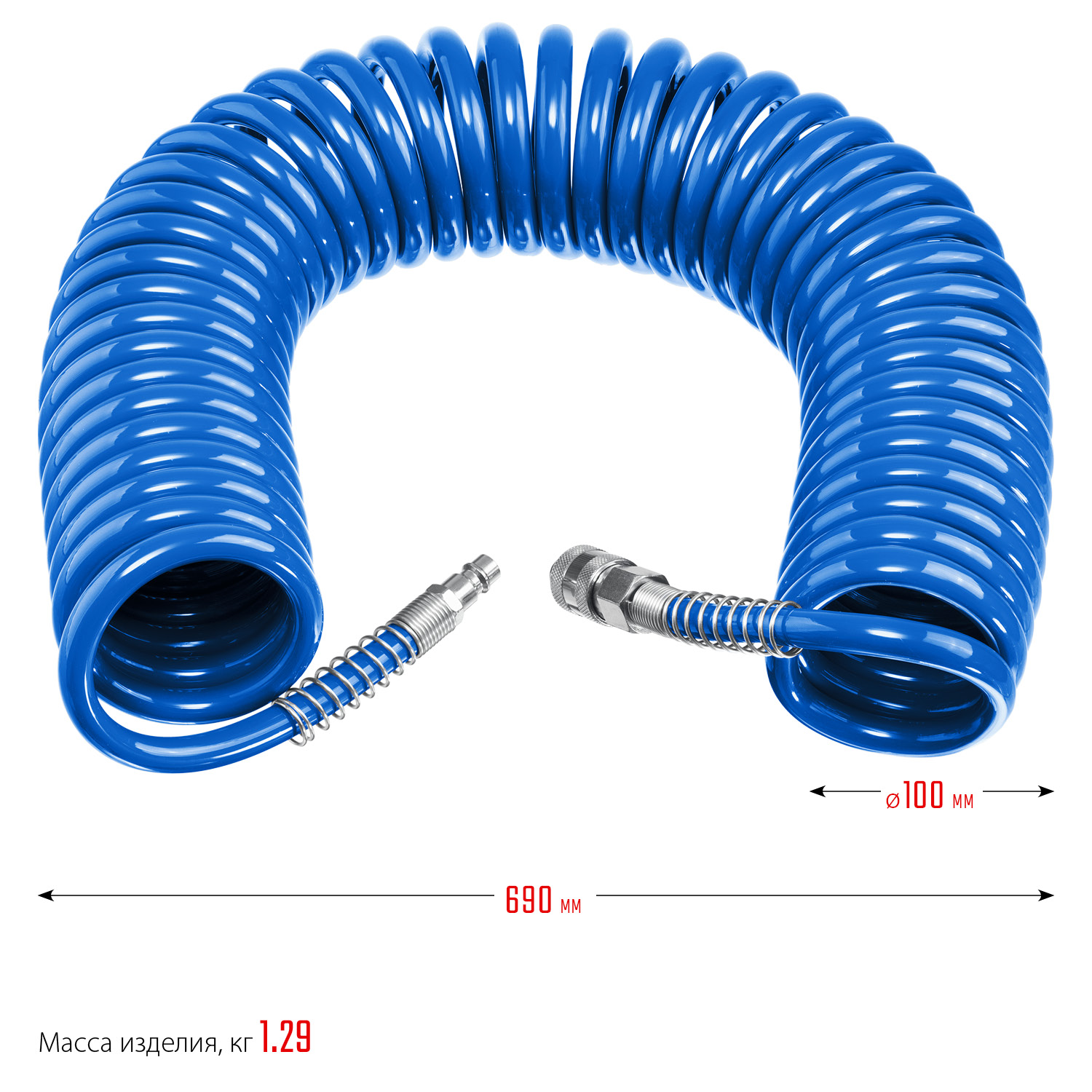 ЗУБР 15 м, 8х12 мм, 15 бар, Воздушный спиральный шланг с фитингами рапид, Профессионал (6472-15)
