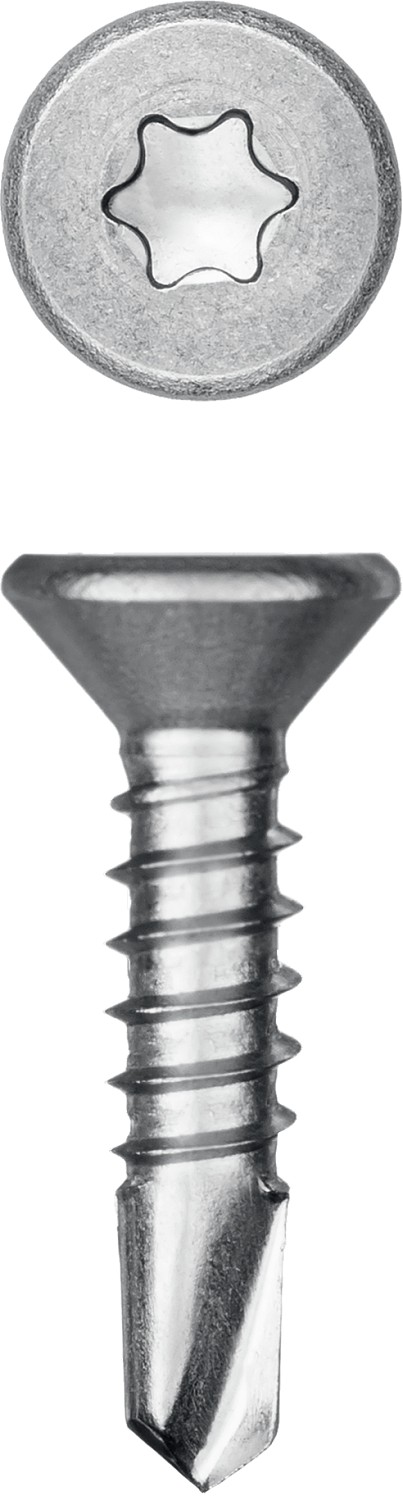 Саморезы с потайной головкой и сверлом изготовлены в соответствии со стандартом DIN7504P из нержавеющего прутка. Легирование никелем, хромом и марганцем полностью сохраняет аустенитную структуру кристаллической решетки, благодаря чему нержавеющие саморезы обладают хорошей прочностью и пластичностью, немагнитными свойствами и невысокой электропроводностью. Саморезы легко вкручиваются обычным шуруповертом или отверткой.