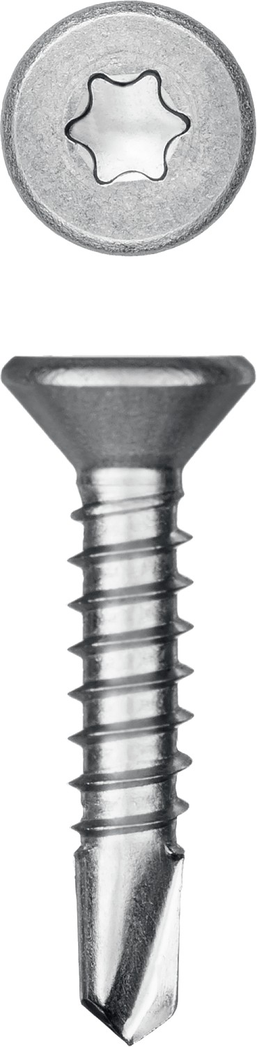 Саморезы с потайной головкой и сверлом изготовлены в соответствии со стандартом DIN7504P из нержавеющего прутка. Легирование никелем, хромом и марганцем полностью сохраняет аустенитную структуру кристаллической решетки, благодаря чему нержавеющие саморезы обладают хорошей прочностью и пластичностью, немагнитными свойствами и невысокой электропроводностью. Саморезы легко вкручиваются обычным шуруповертом или отверткой.