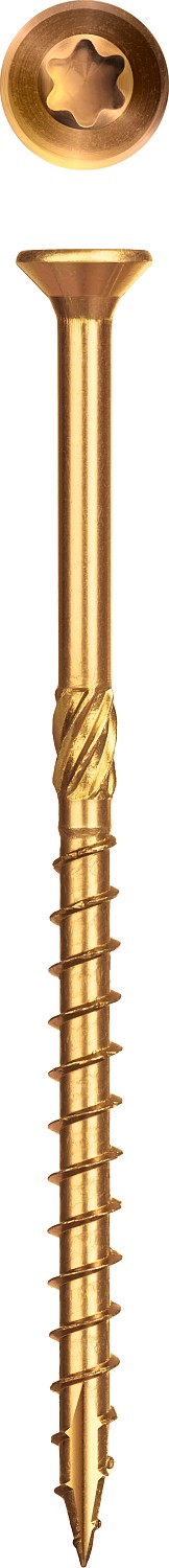 • Потайная головка с насечками для раззенковки утапливается в древесине, что придает конструкции эстетичный вид.