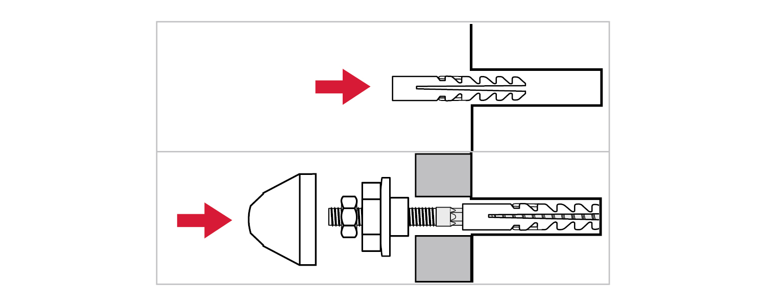 Крепление писсуаров к бетонному или кирпичному основанию. Диаметр предварительного сверления: 14 мм.