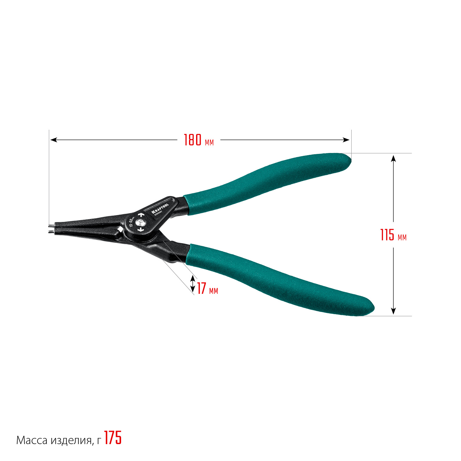 KRAFTOOL 180 мм, прямые губки, внешний, Съемник стопорных колец (22812-3)