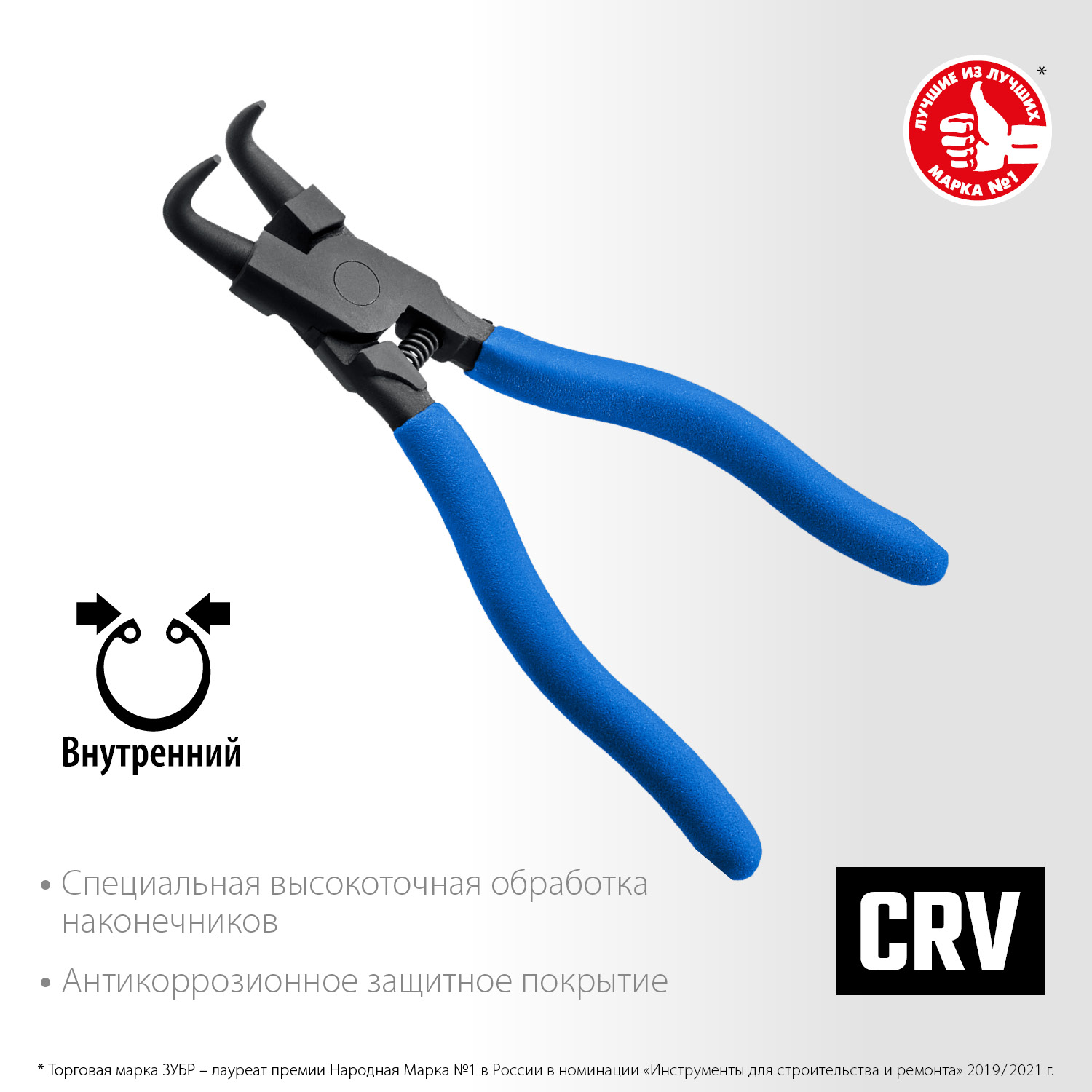 ЗУБР 170 мм, изогнутые губки, Внутренний съемник стопорных колец (22821-2)