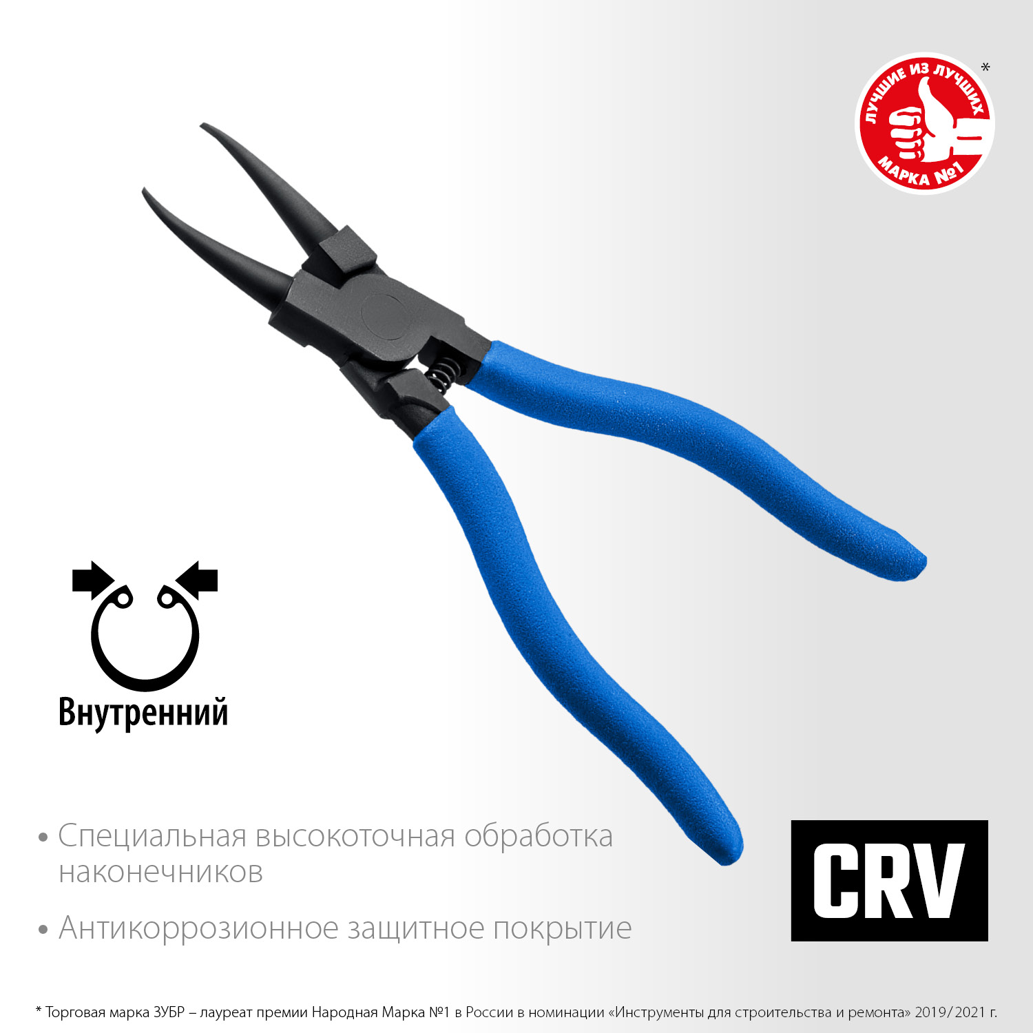 ЗУБР 180 мм, прямые губки, Внутренний съемник стопорных колец (22821-1)