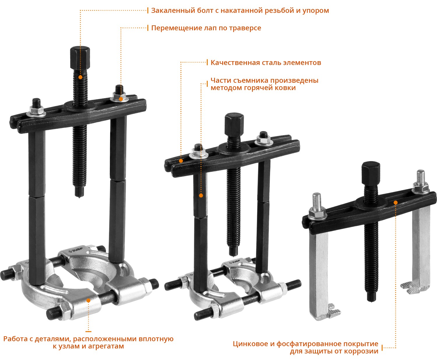 Съемник незаменим в случаях, когда подшипники, шестерни и другие детали, которые необходимо демонтировать, расположены вплотную к агрегату.