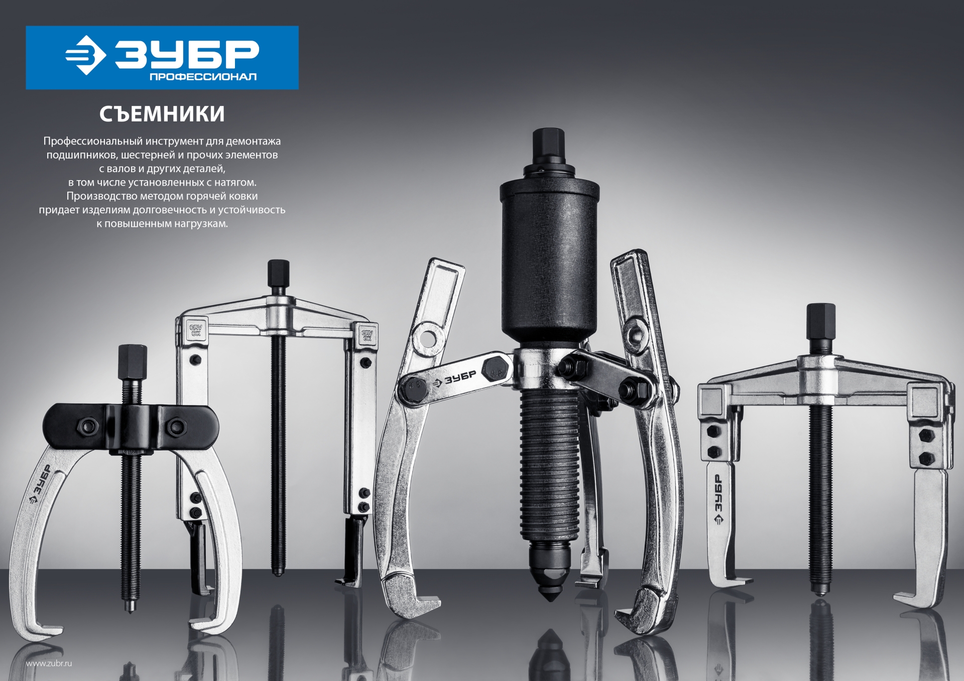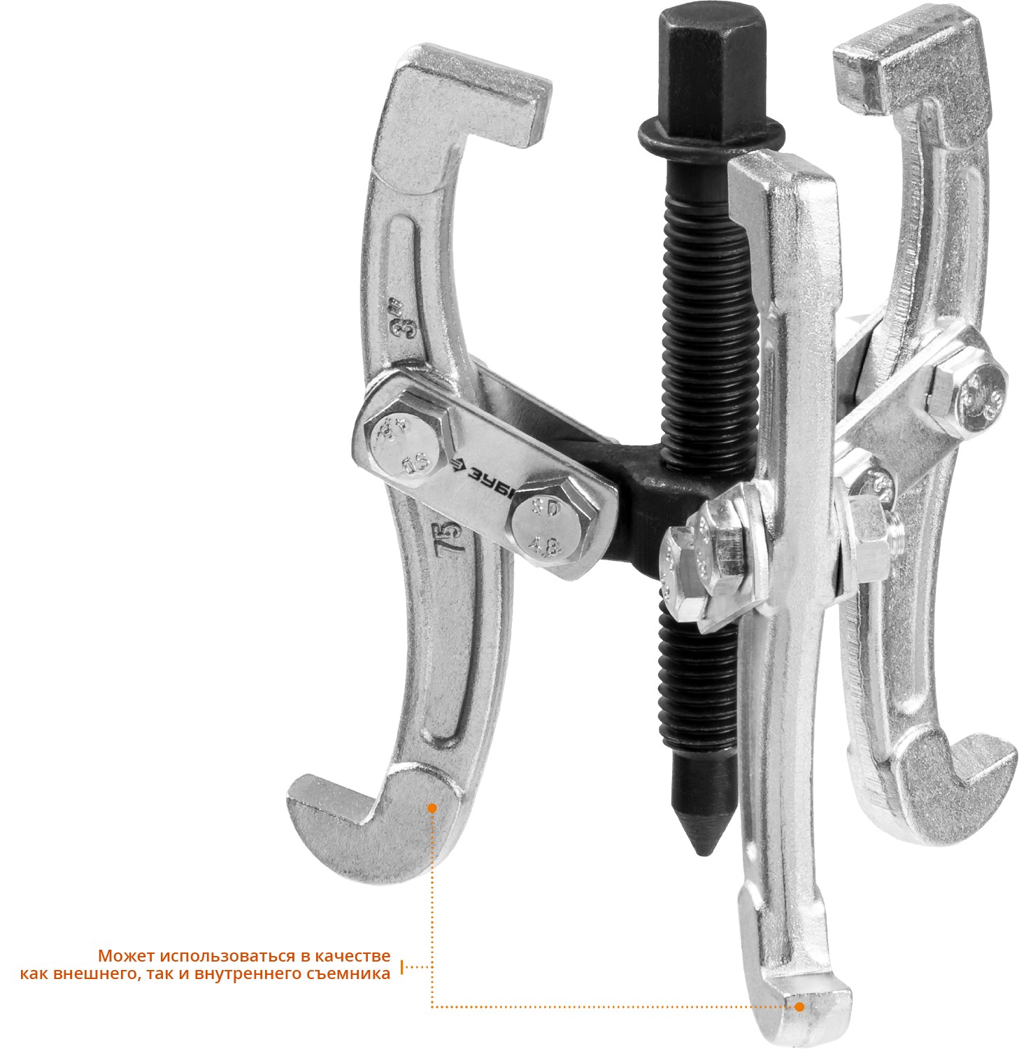 Захваты съемника выкованы из качественной инструментальной стали, что обеспечивает долгий срок службы при работе с высокими нагрузками. Позволяет работать с широким рядом узлов