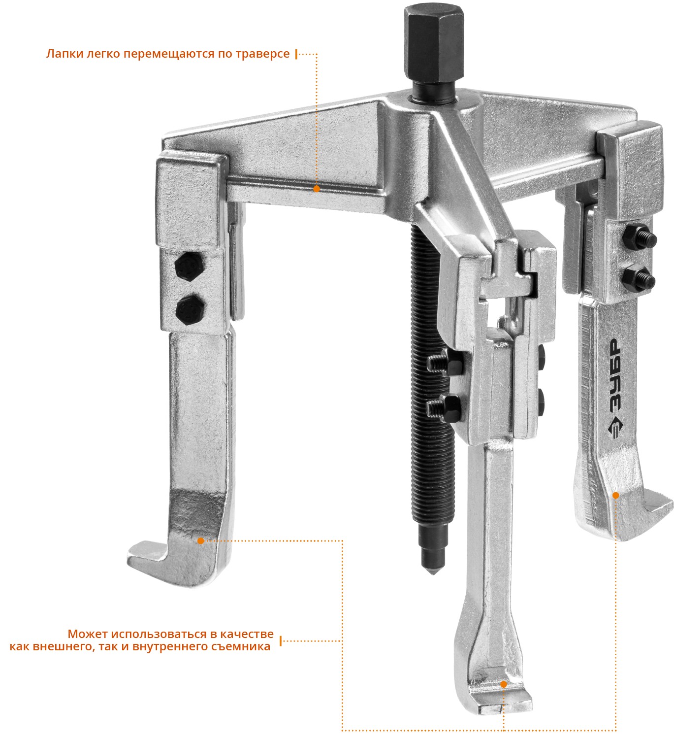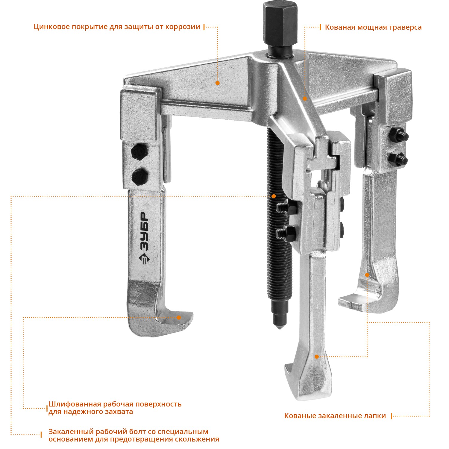 ЗУБР внешний d 30-130 мм, Раздвижной трехзахватный съемник, Профессионал (43312-180-150)