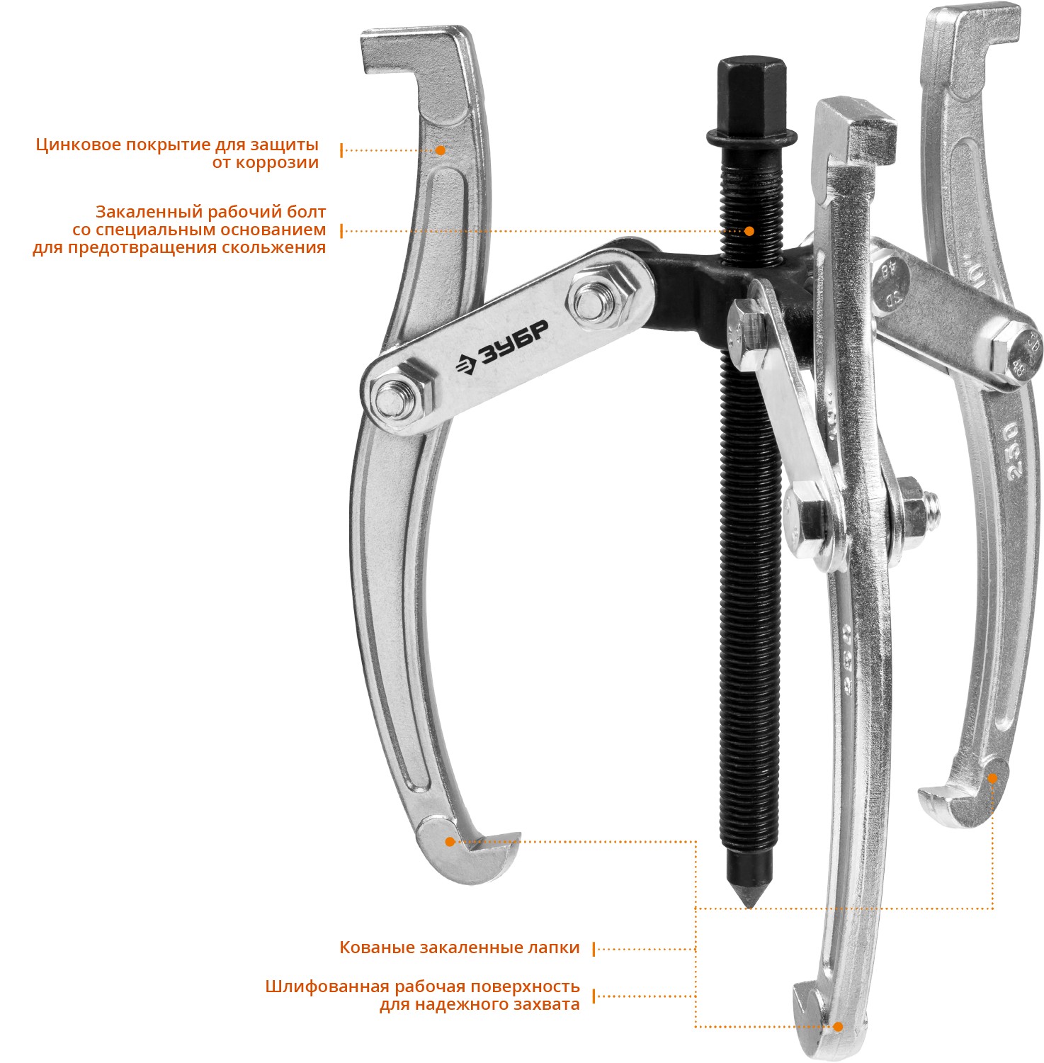 ЗУБР внешний d 40-265 мм, внутренний d 70-230 мм, Шарнирный трехзахватный съемник, Профессионал (43318-205)