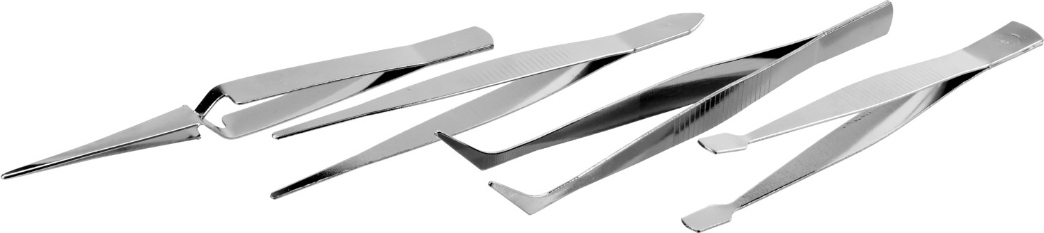 Применяется для: Удержания мелких деталей, Работ в точной механике, Набор: самозажимной пинцет с тонкими губками, пинцет с изогнутыми губками для специального применения, пинцет с стандартными губками для общего использования, пинцет с плоскими и широкими губками для использования в быту и медицине,