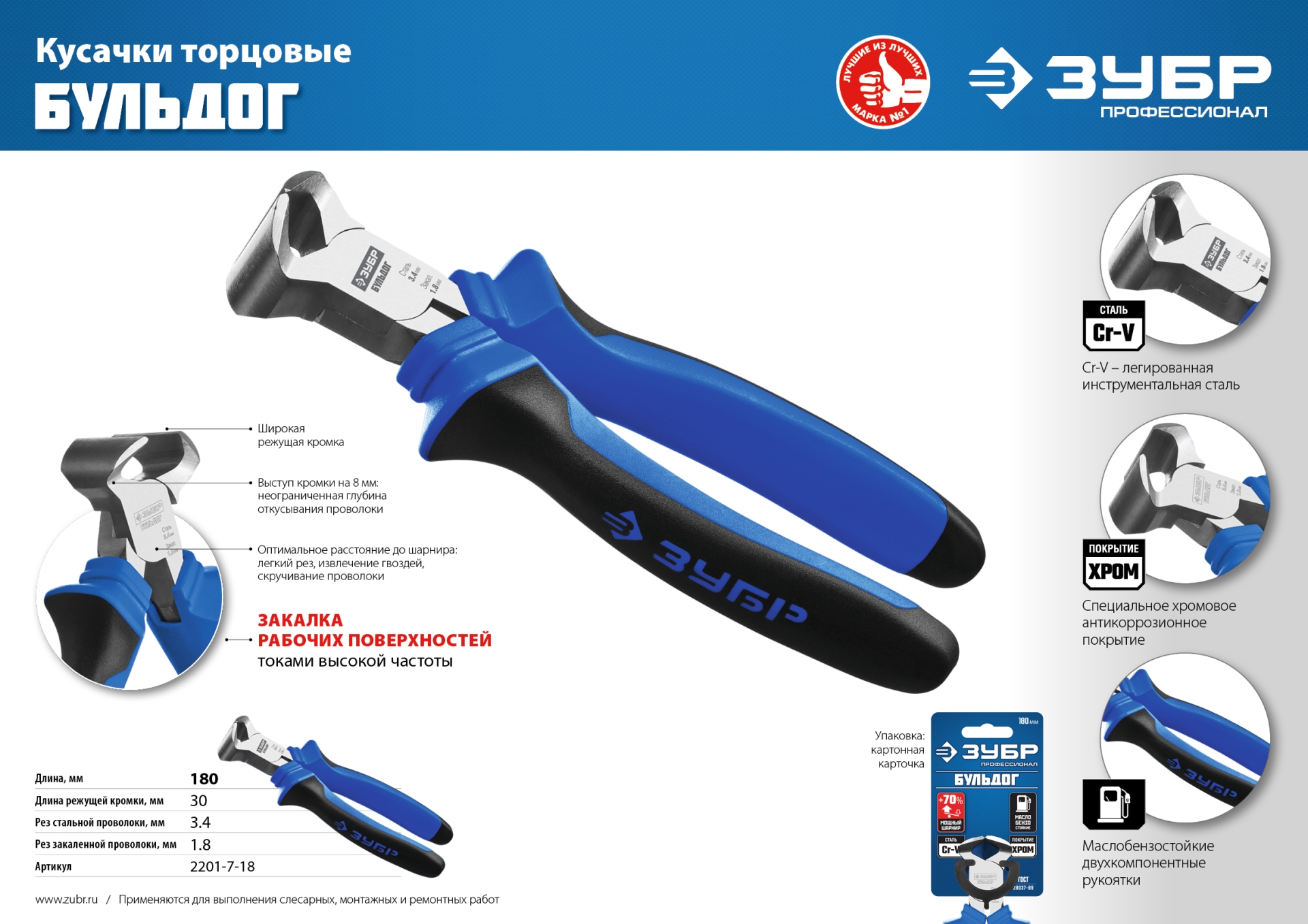 ЗУБР 180 мм, Торцевые кусачки, Профессионал (2201-7-18)
