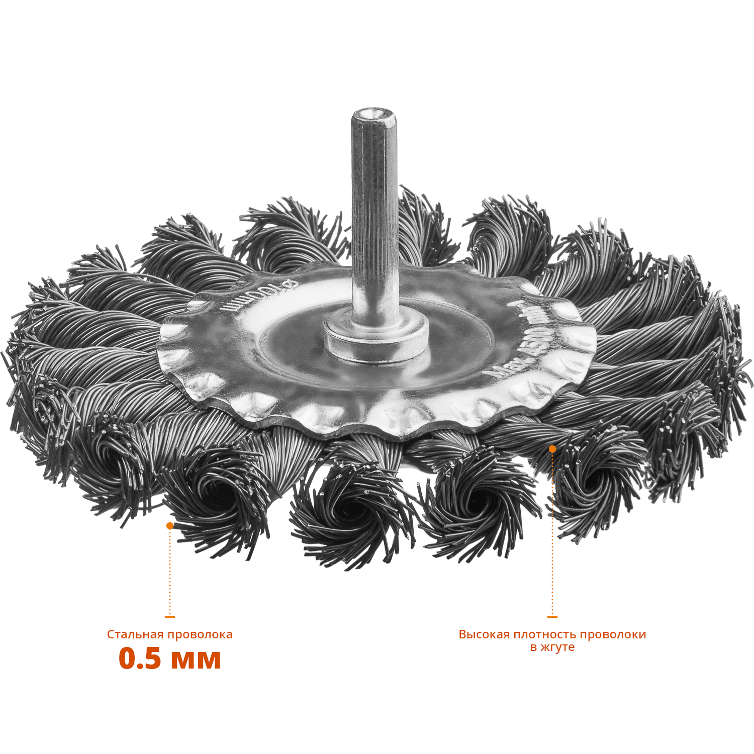 MIRAX 100/6 мм, жгутированная стальная проволока, 0.5 мм, Щетка дисковая (35146-100)