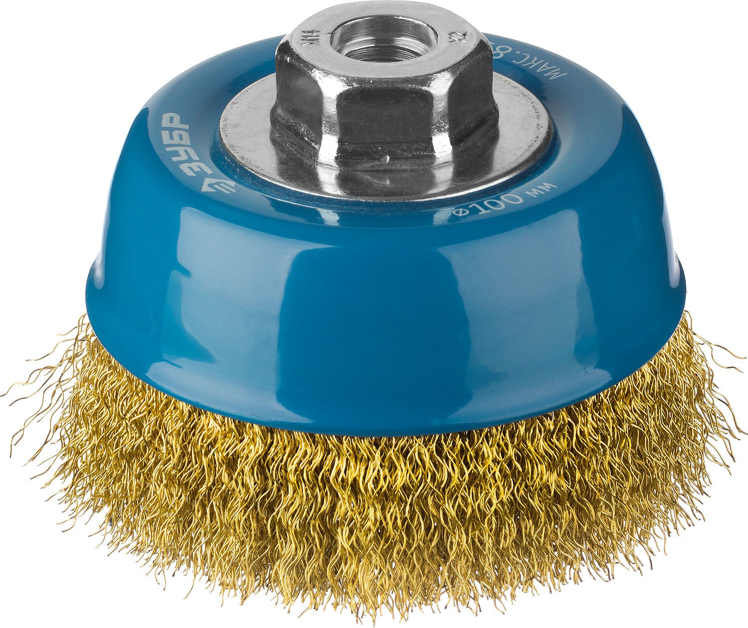 ЗУБР 100 мм, витая латунированная стальная проволока, 0.3 мм, Щетка чашечная, Профессионал (3526-100)