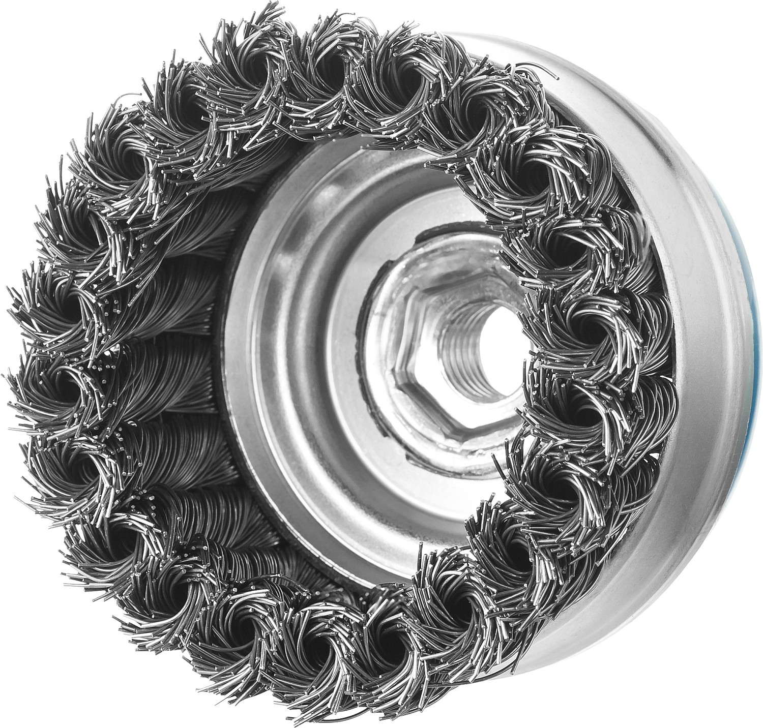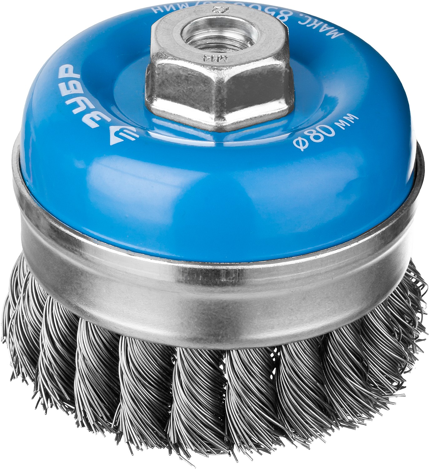 ЗУБР 80 мм, М14, жгутированная стальная проволока, 0.5 мм, Щетка чашечная усиленная, Профессионал (3527-080)