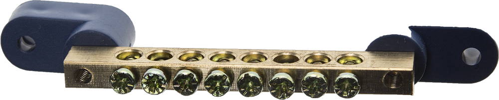 для соединения нулевых рабочих и нулевых защитных проводников. Устанавливается в электрических щитках и электроустановках с напряжением до 400 В.