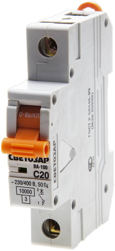 Автоматический 1-полюсный выключатель СВЕТОЗАР ″C″, 10 кА, 230/400 В выполняет функцию защиты установок от перегрузок и коротких замыканий. Он применяется в жилых, промышленных и административных зданиях. Главная особенность при выборе выключателя: он должен соответствовать напряжению и расчётному току цепи. Прибор выключает сеть при 5-10 кратном превышении номинальной силы тока. Выключатель превосходит параметры ГОСТ (от -5°С до +40°С), поскольку устойчив к температурам от -40°С до +45°С.