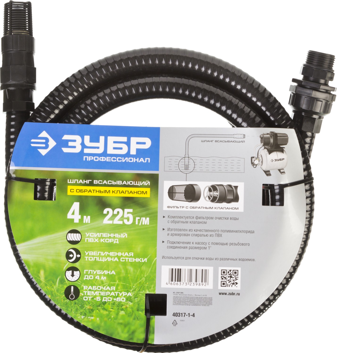 Шланг всасывающий с обратным клапаном используется в качестве входной магистрали насосов для подачи чистой холодной воды из различных водоёмов. Прочный шланг изготовлен из качественного поливинилхлорида и армирован спиралью из ПВХ. На одном конце шланга обратный клапан с сетчатым фильтром для очистки воды, на другом конце - адаптер для подключения к насосу с помощью резьбового соединения 1″. Качественные материалы обеспечивают высокую надёжность и продолжительный срок службы изделия.