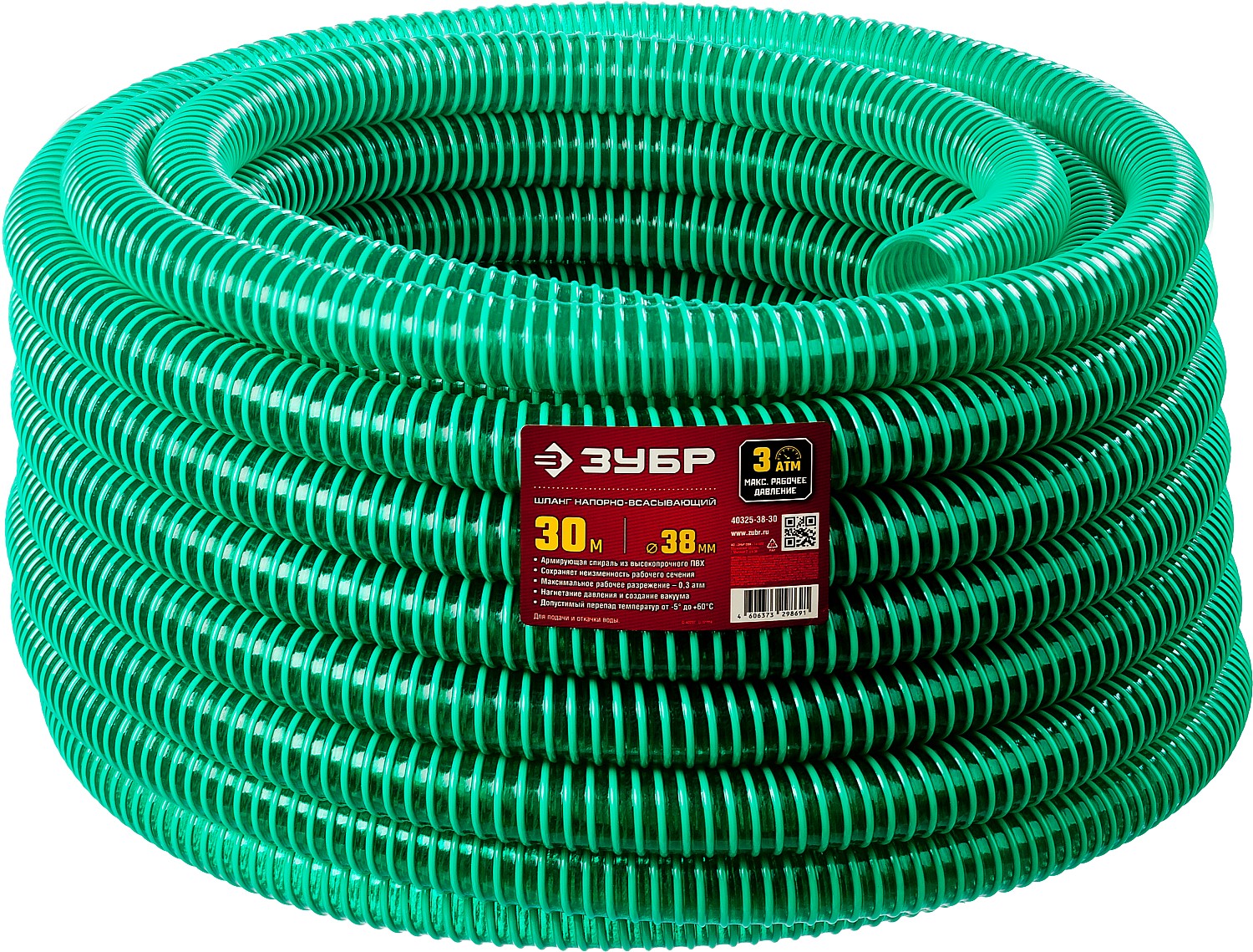 ЗУБР размеры 38 мм x 30 м, 3 атм, со спиралью ПВХ, напорно-всасывающий шланг (40325-38-30)