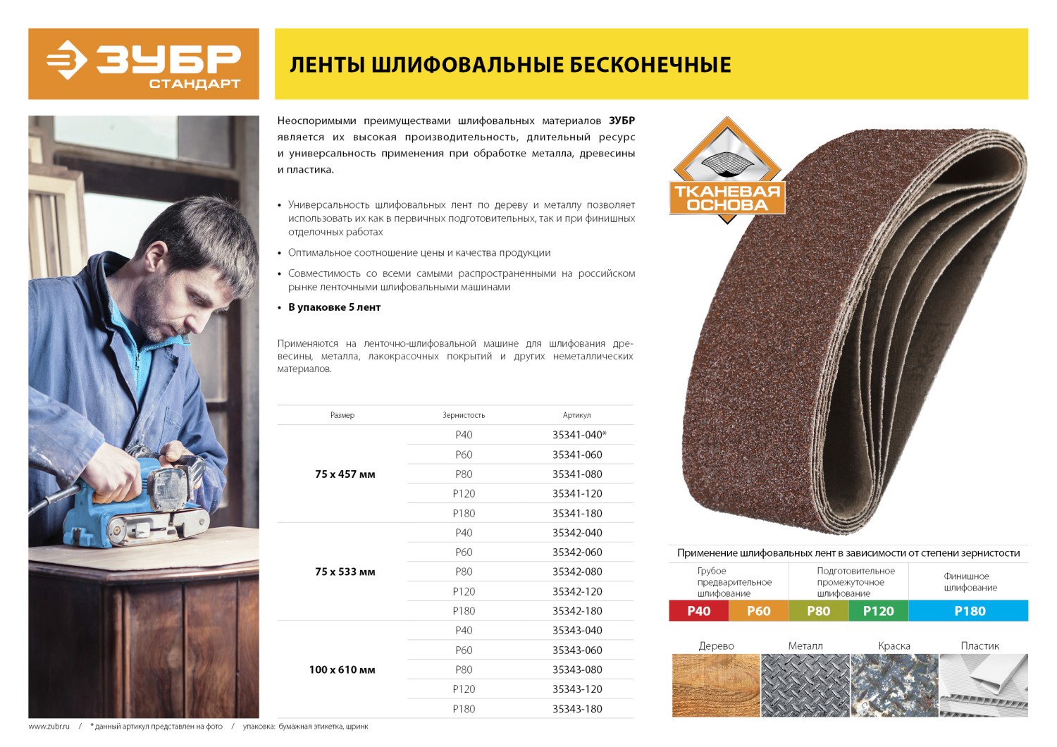 Неоспоримыми преимуществами шлифовальных материалов ЗУБР является их высокая производительность, длительный ресурс и универсальность применения при обработке металла, древесины и пластика.