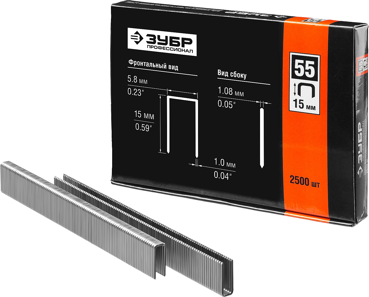 ЗУБР тип 18GA (55 / 90 / C) 15 мм, 2500 шт, скобы для степлера (31855-15)