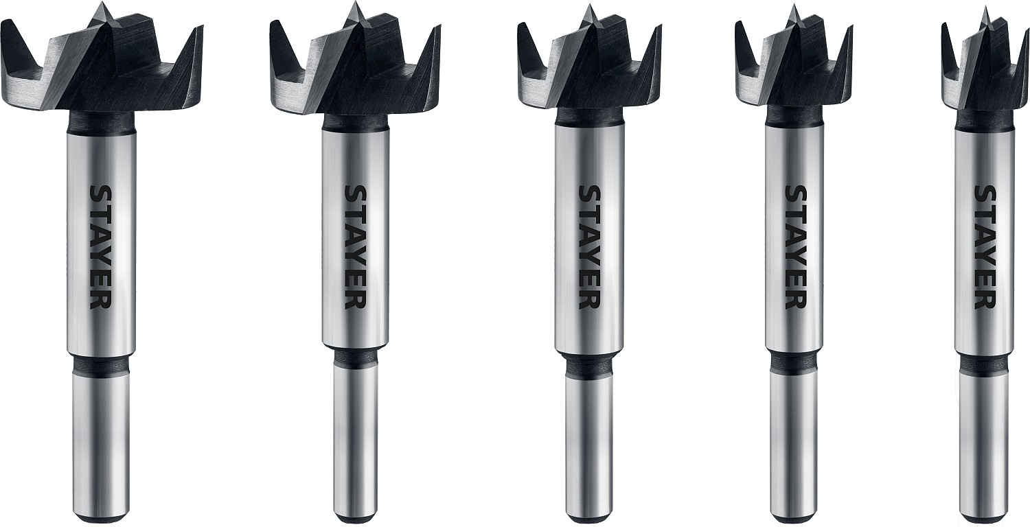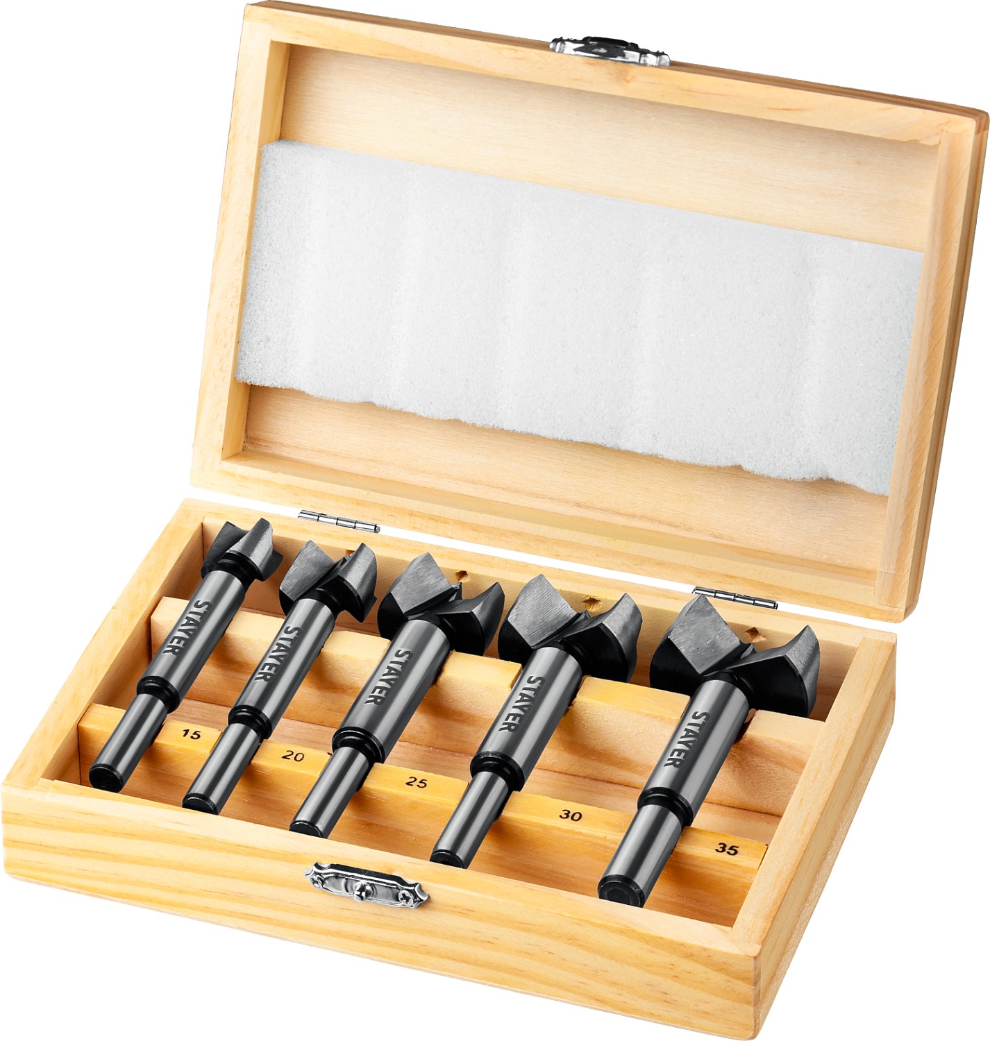 STAYER Forstner 5 шт., 15-20-25-30-35мм, набор сверл форстнера по дереву, ДСП